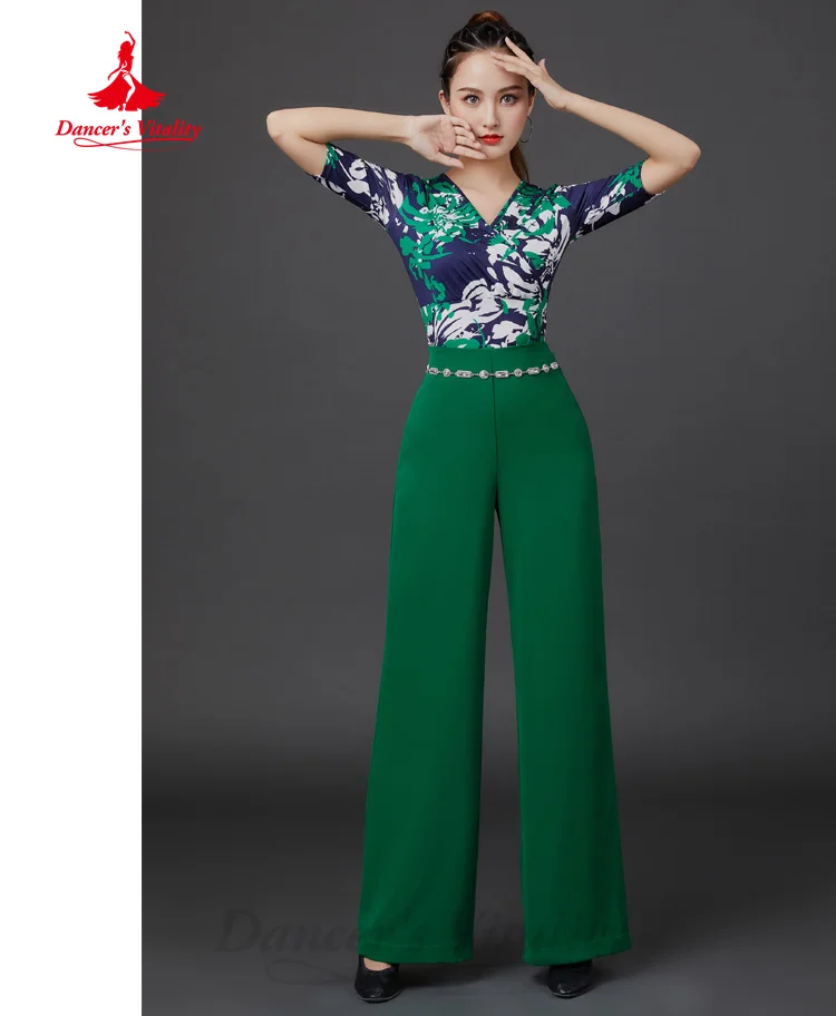 Latin Dance Modern Dancing Women's Customized High Waist Slimming Straight Tube Pants Tango Samba Professional Training Clothes