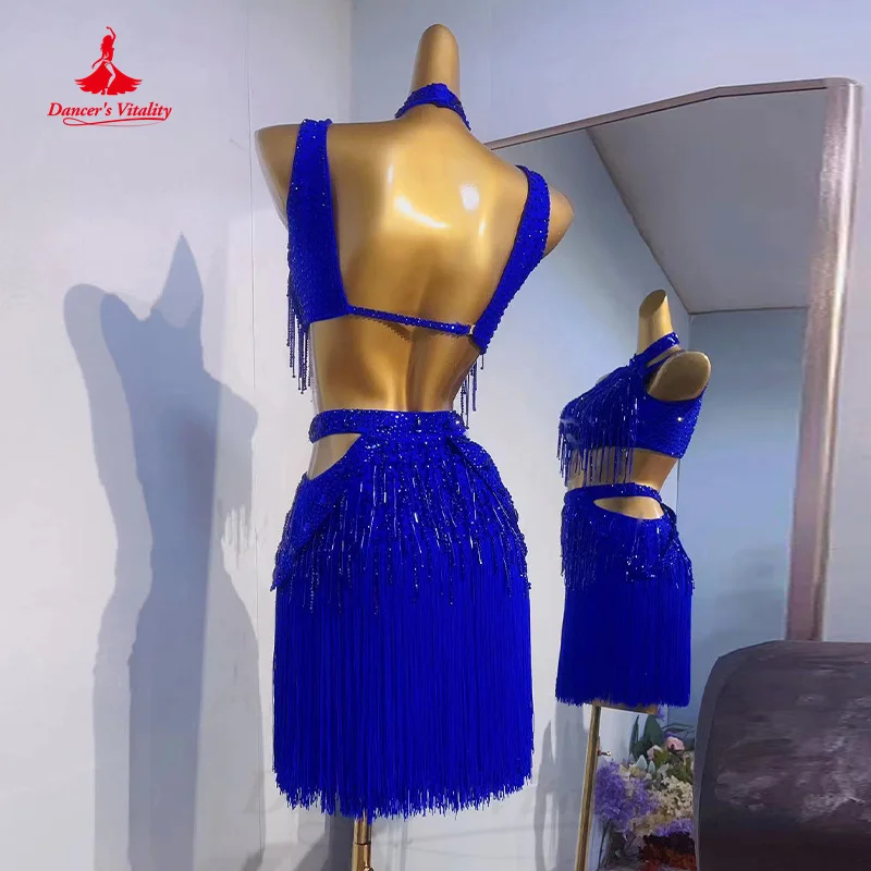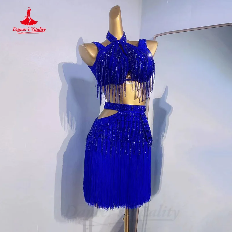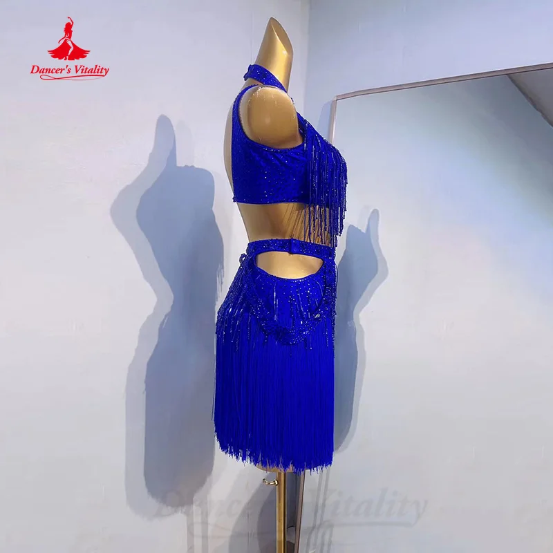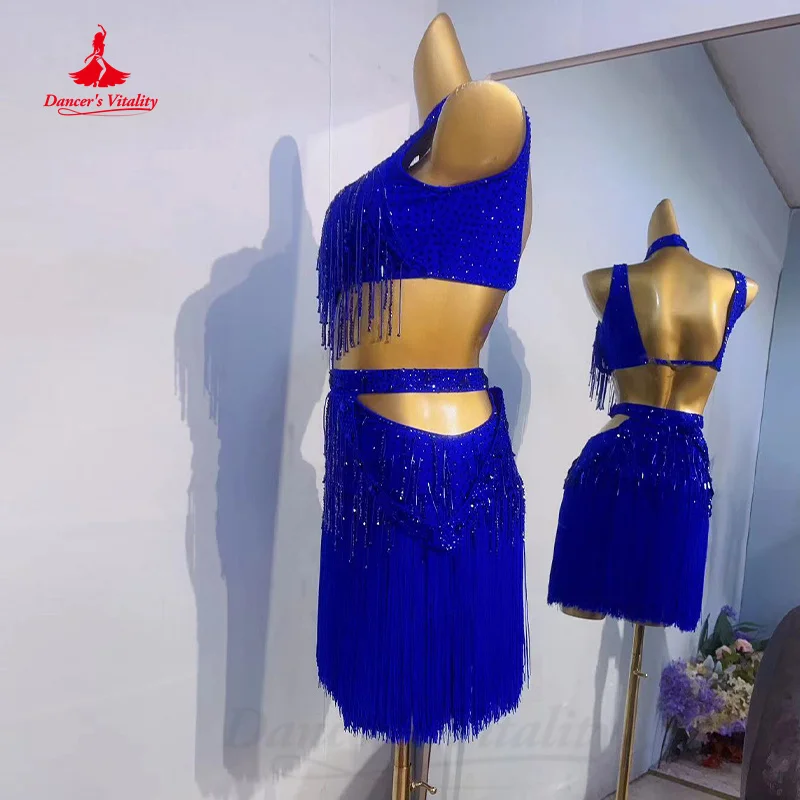 Latin Dance Costume Set Women's Customization Senior AB Stones Tassels Suit Chacha Samba Tango Professional Performance Costumes