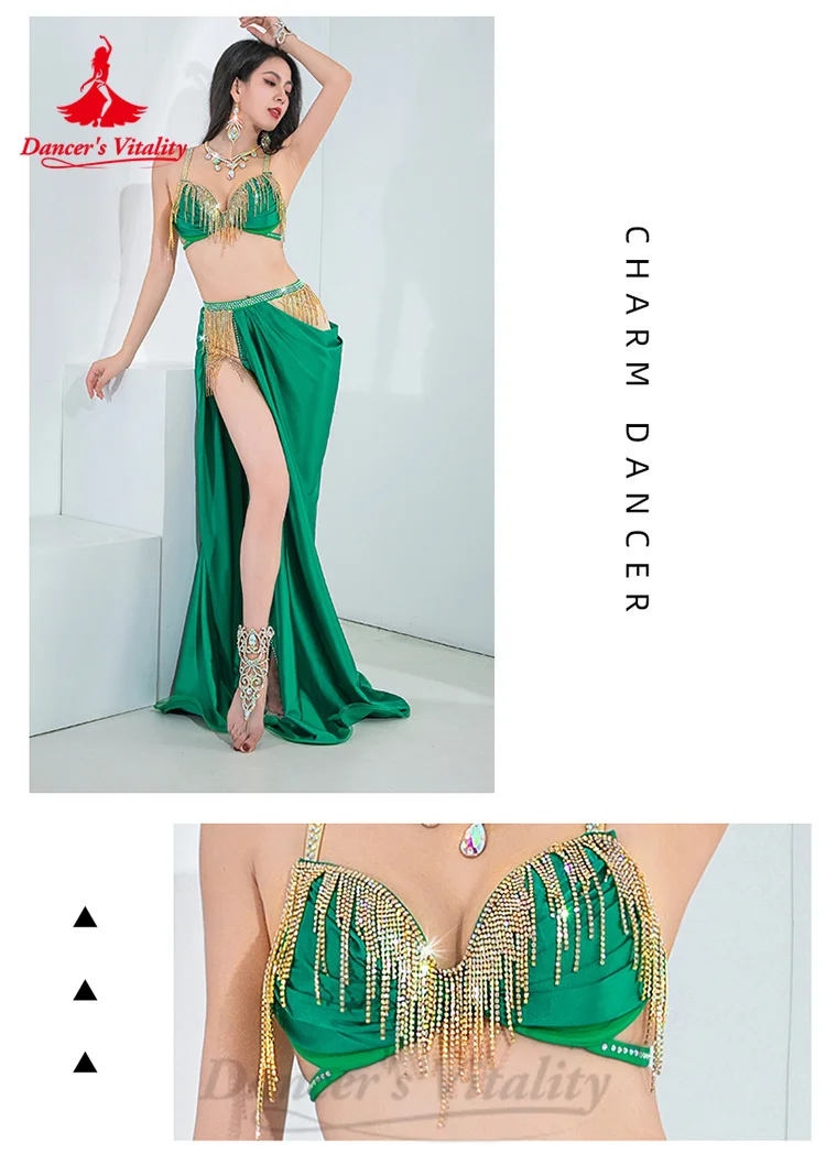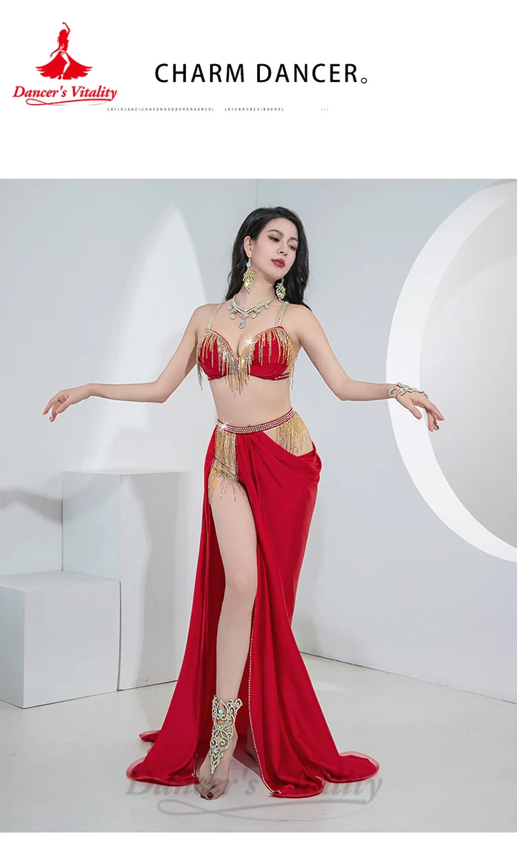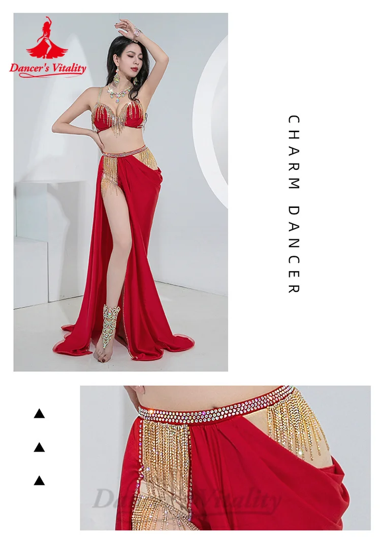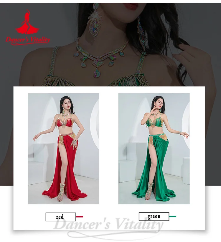 BellyDance Costumes Suit Women's Customized Senior AB Stones Bra+sexy Split Long Skirt 2pcs Oriental Dance Performance Costumes