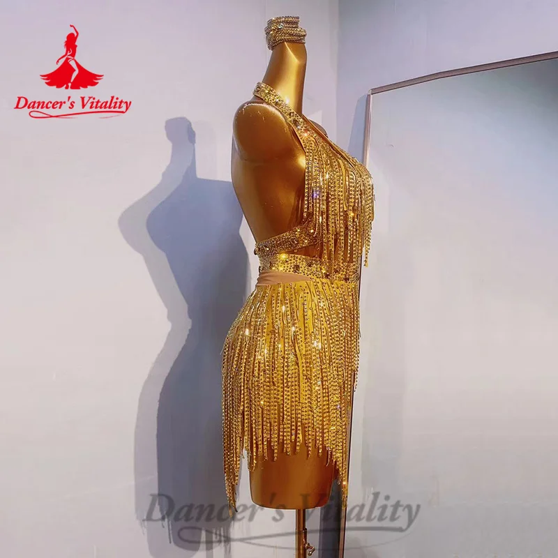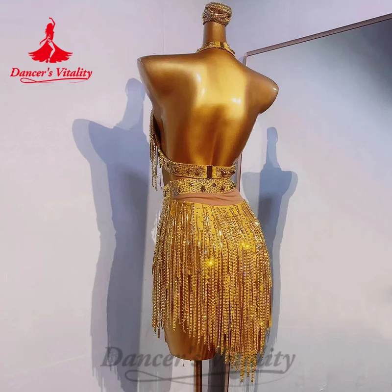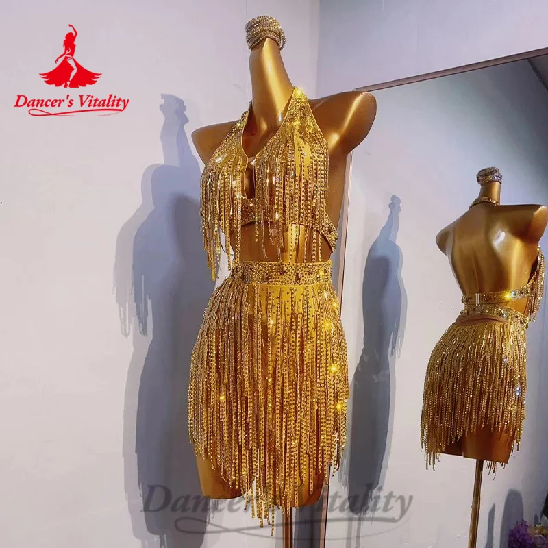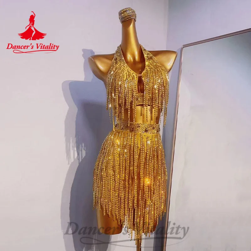 Latin Dance Professional Performance Costumes Women's Customization Diamond Tassel Set Tango Chacha Samba Competition Uniform