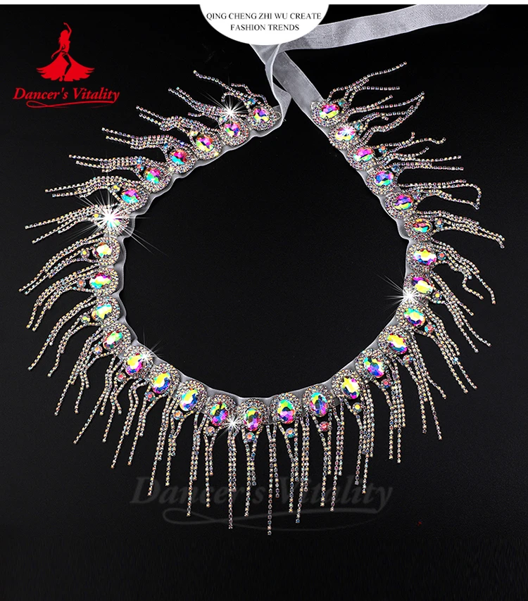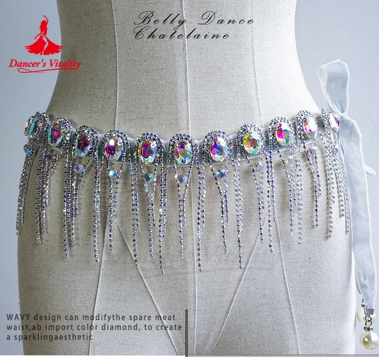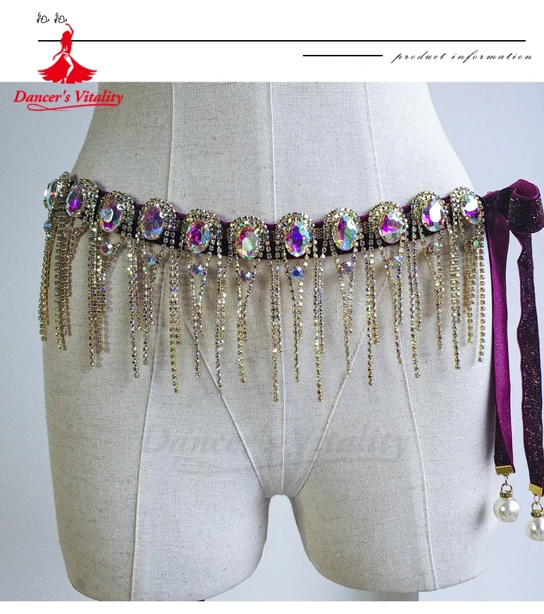Belly Dance Costume Set for Women Senior AB StonesTassel Belt Girl's Practice Performance Accessories Oriental Hip Scarf