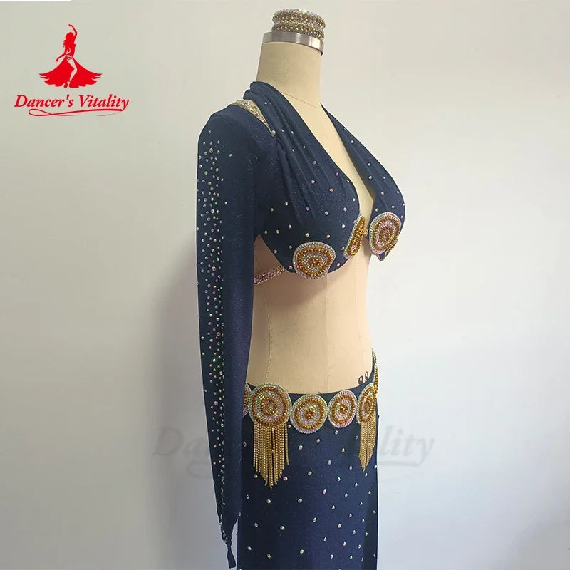 Belly Dance Performance Set for Women Sleeves+bra+long Skirt 3pcs Adult Chilren Oriental Belly Dancing Competiton Wear Outfit