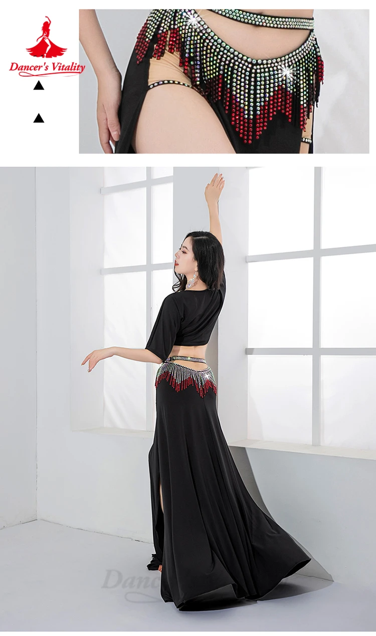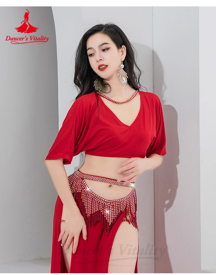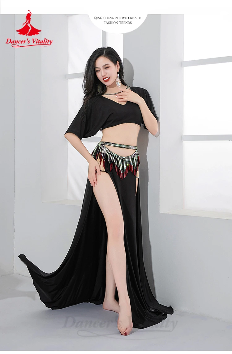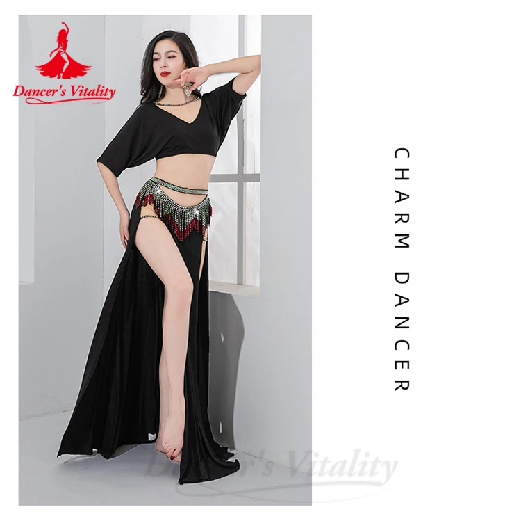 Bellydance Costume Set Customized Short Sleeved Vneck Top+Sexy Split Long Skirt 2pcs Women's Oriental Dance Performance Clothing