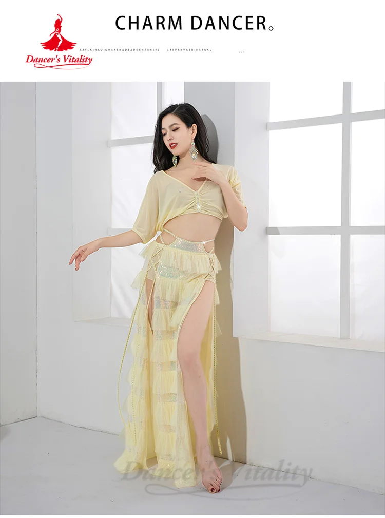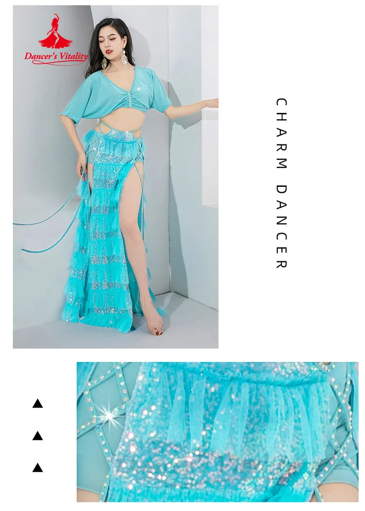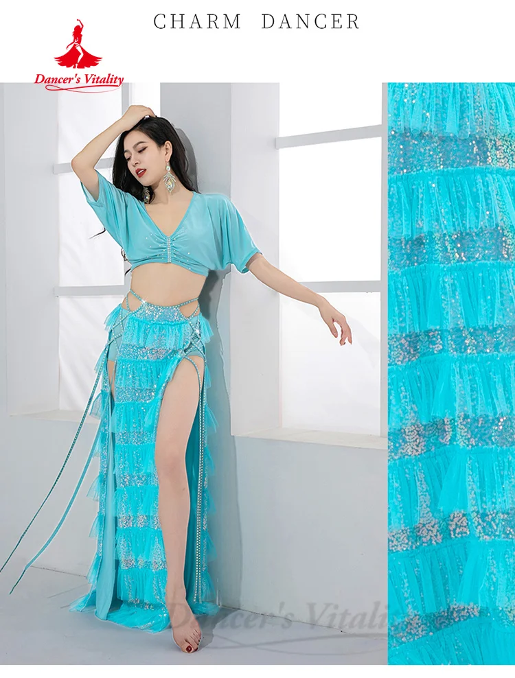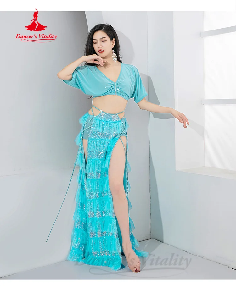 BellyDance Performance Set Women's Customized Light Luxury Rhinestone Sequins Oriental Dance Practice Set Belly Dancing Outfit