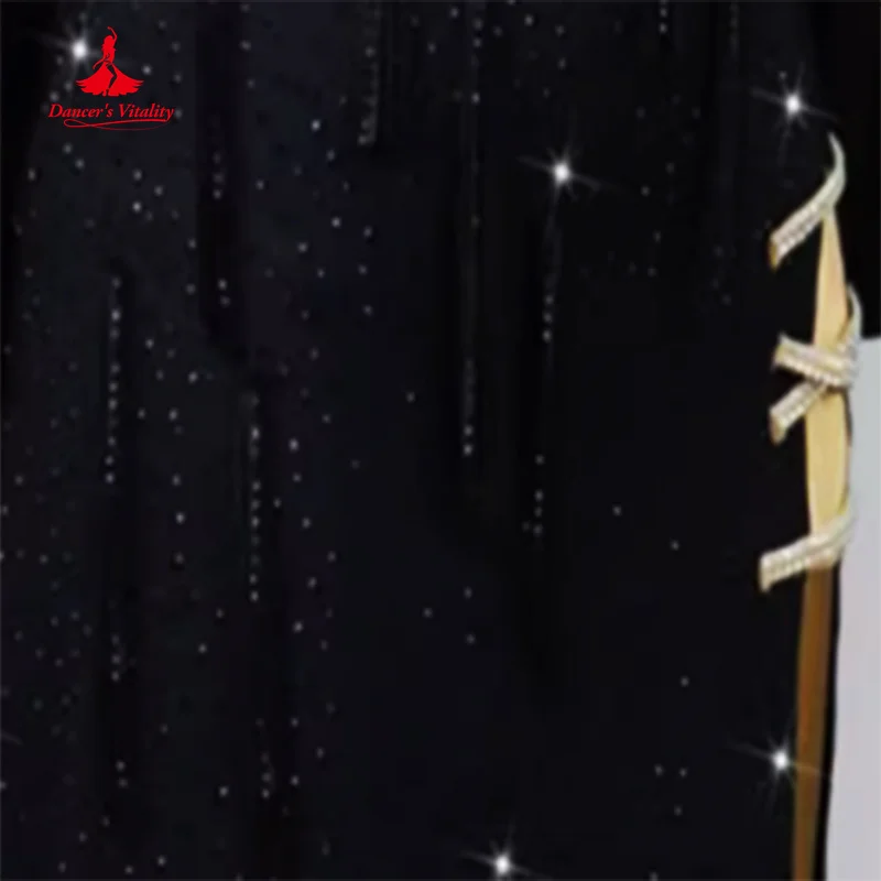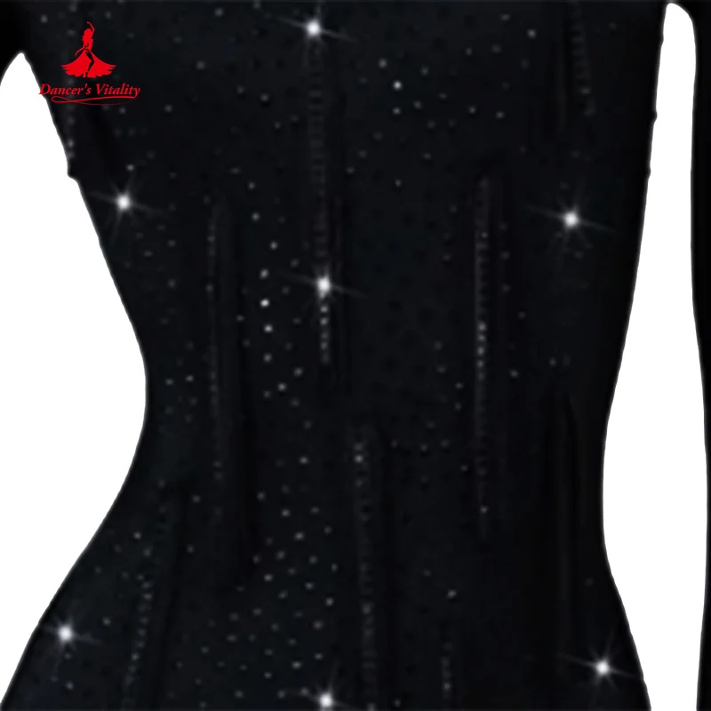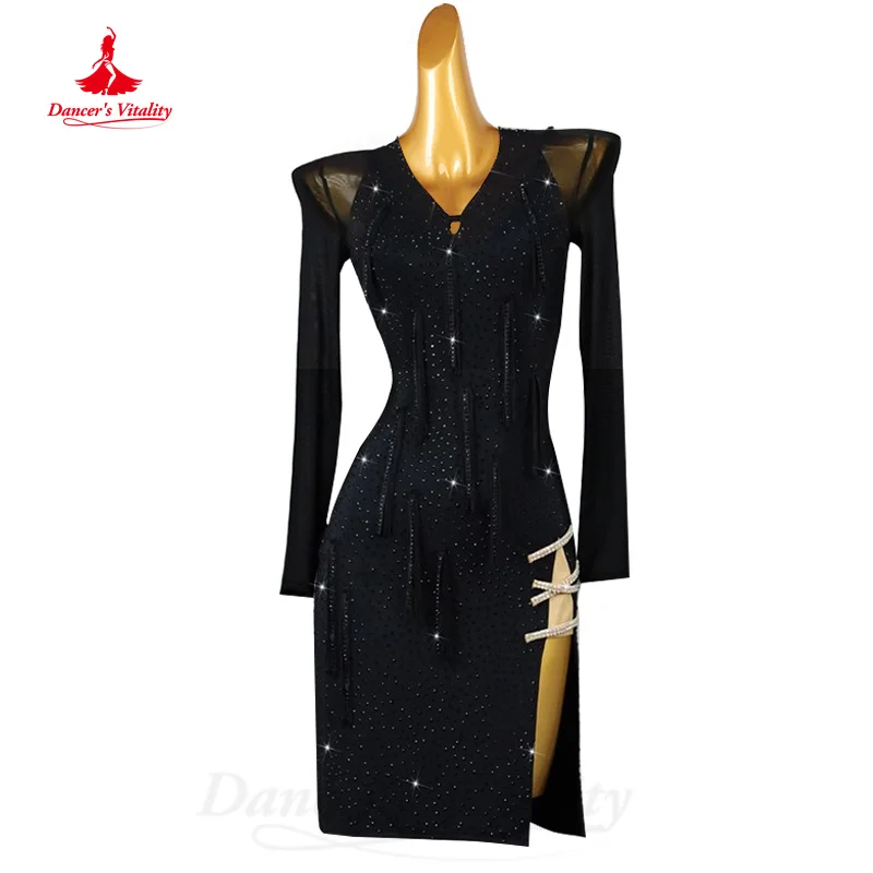 Latin Dance Costume Customized Long Sleeved Luxury Water Diamond Split Dress Tango Rumba Samba Professional Performance Clothing