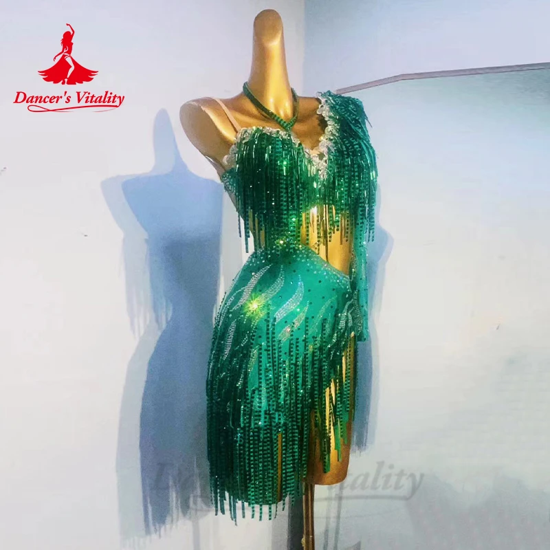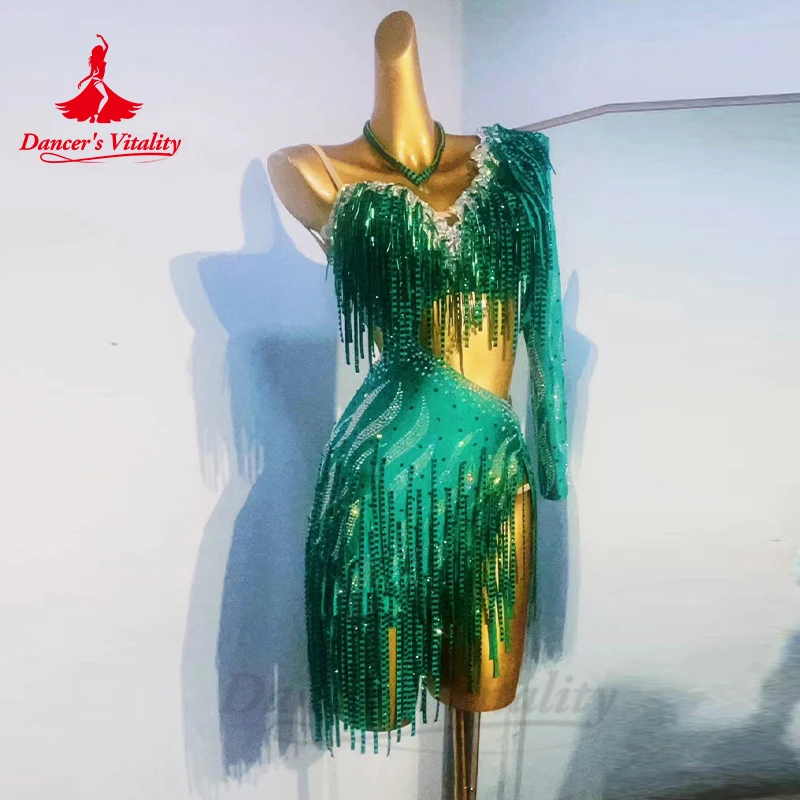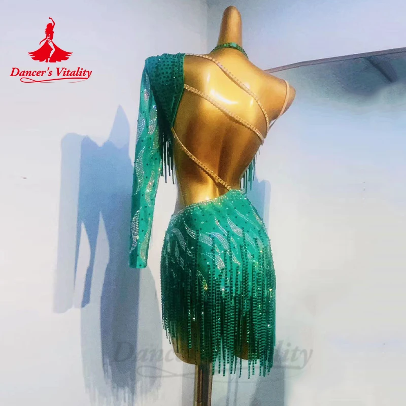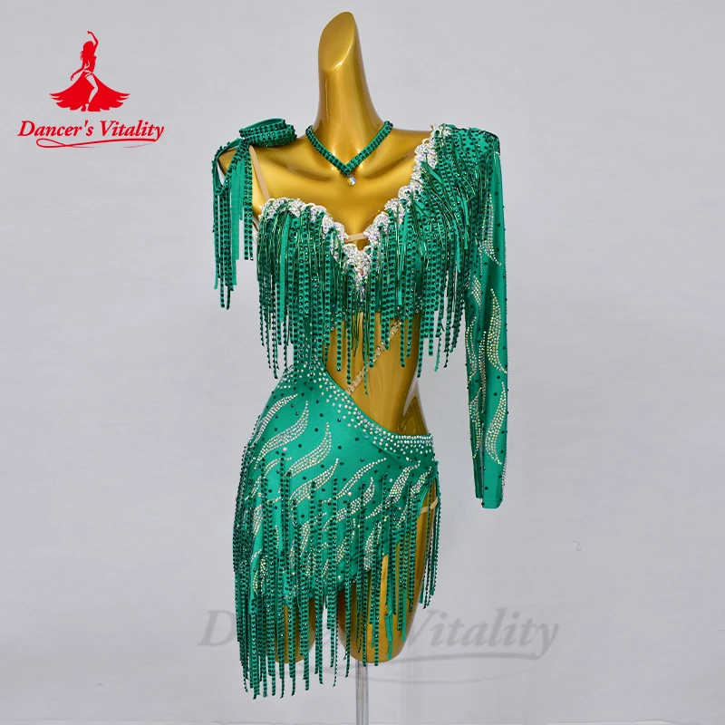 Latin Dance Costumes Senior AB Stones Tassels Sexy Backless Dress Women's Customization Tango Chacha Samba Performance Costume
