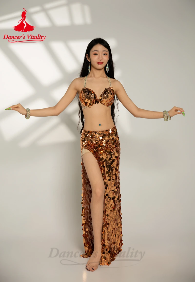 Belly Dance Costume Set for Women Big Sequins Bra+split Long Skirt 2pcs Girl's Oriental Belly Dancing Performance Costume Suit