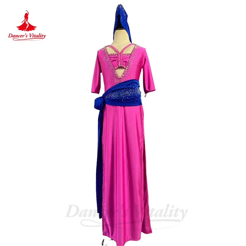 Belly Dance Costume for Children's Rose Red Slim Fit Robe with Diamond Headband Belt Oriental Dance Saidi Baladi Clothing Set