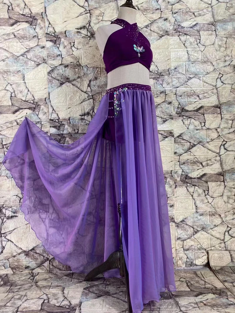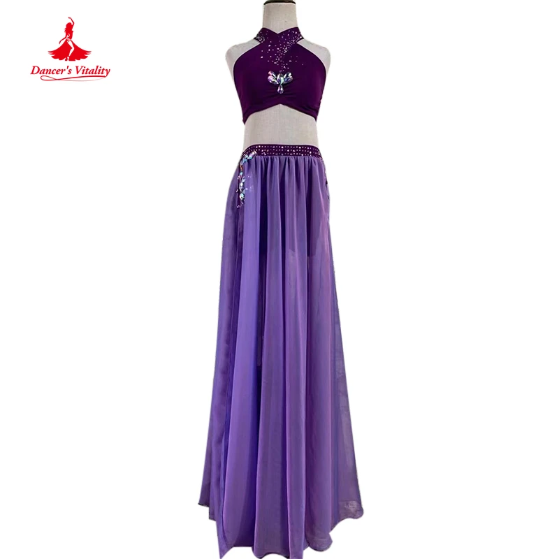Bellydance Costume Senior AB Stones Bra+split Chiffon Long Skirt 2pcs for Women Customzied Oriental Belly Dancing Wear Suit