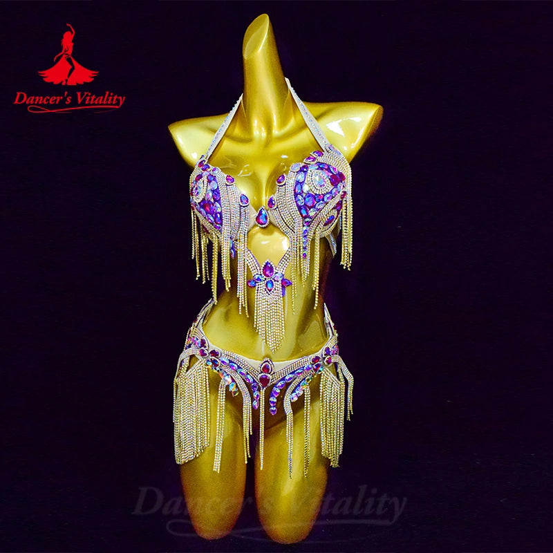 Belly Dance Performance Bra Suit for Women Customsized Senior AB Stones Bra+belt 2pcs Adult Children Oriental Dancing Bra Suit