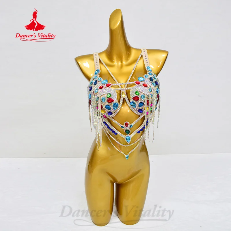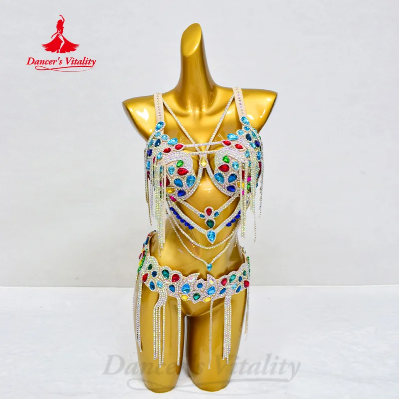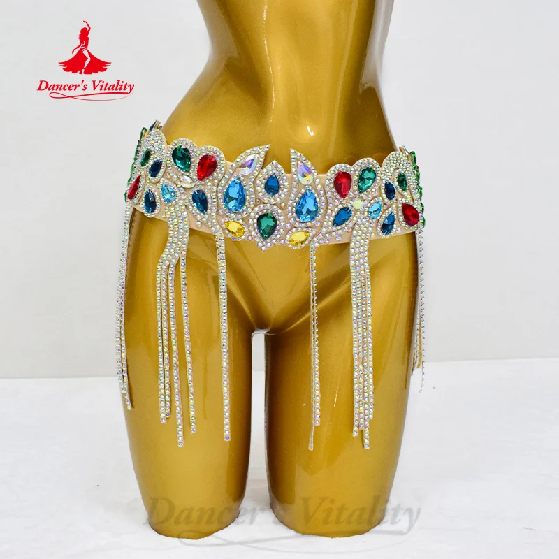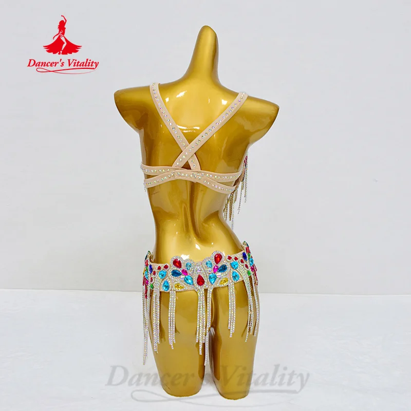 Belly Dance Performance Costume Suit for Women Customized Luxury Full Diamond Tassel Set Oriental Belly Dancing Competition Suit