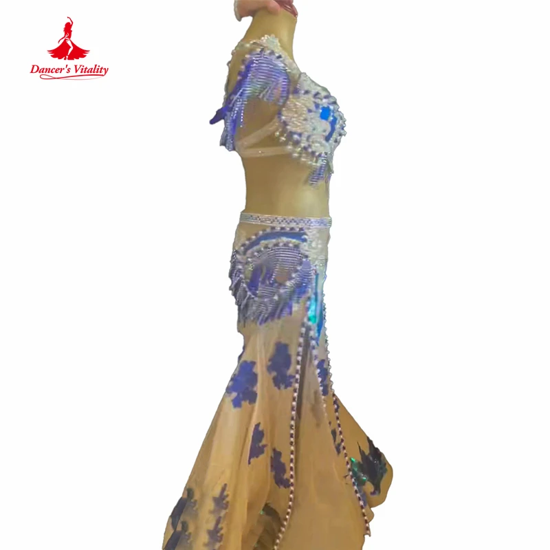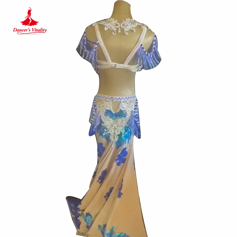 Belly Dance Performance Suit for Women Children Customzied Bra+long Skirt 2pcs Oriental Belly Dancing Competiton Solo Outfit