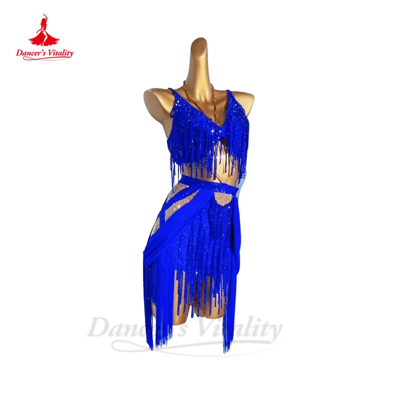 Latin Dance Performance Dress for Lady Rumba Chacha Tango Tassel Skirt Customsize Adult Child Latin Dancing Competiton Dresses