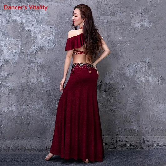 Belly Dancer Suit Diamond-Studded Bra Modal Long Skirt Performance Clothing Set Woman High-End Profession Competition Clothes