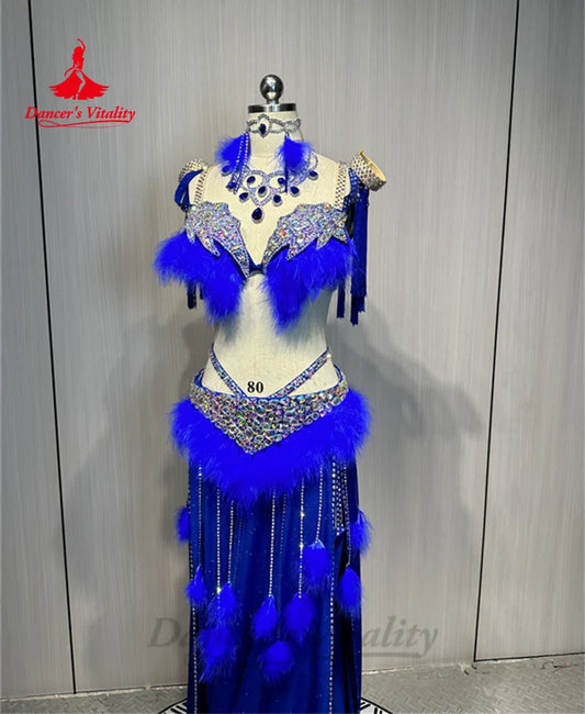 Belly Dance Performance Costumes Advanced Customization Feather Tassels Set Adult Children Oriental Career Competition Clothing