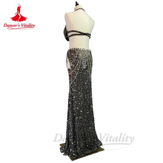 Belly Dance Performance Costumes Women's Customized Sleeveless Top+Sexy Slit Long Skirt Oriental Dance Professional Clothing