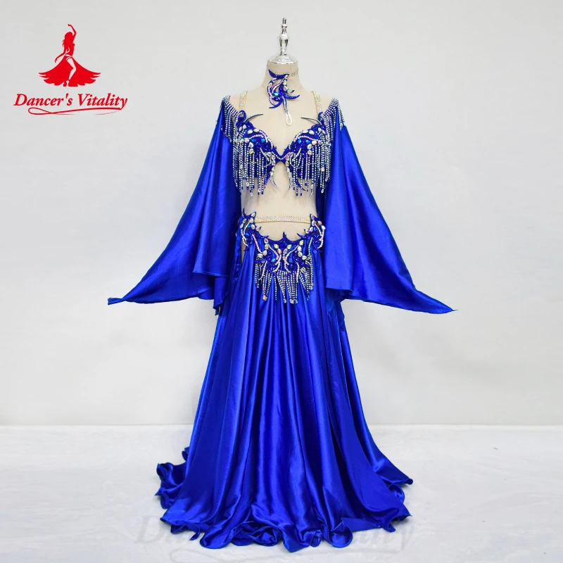 Belly Dancing Outfit Customized Luxury AB Stones Bra+high-end Satin Split Long Skirt 2pcs Oriental Professional Performance Suit