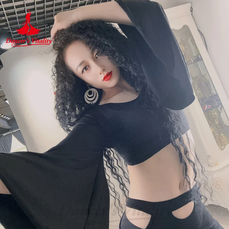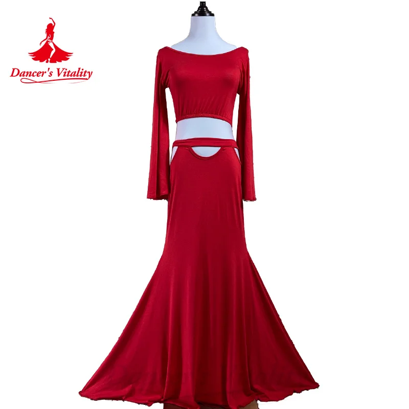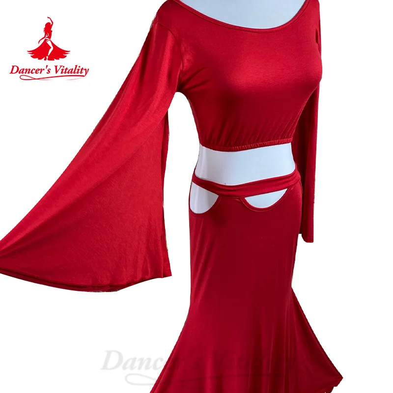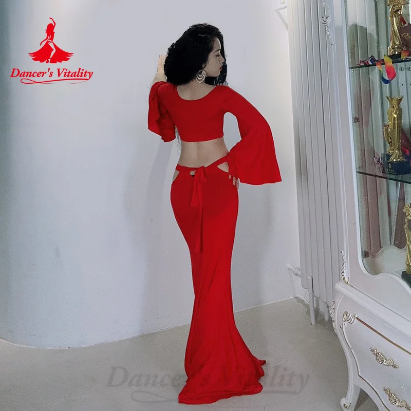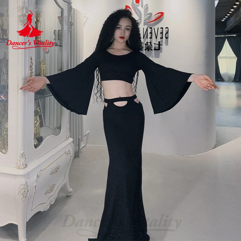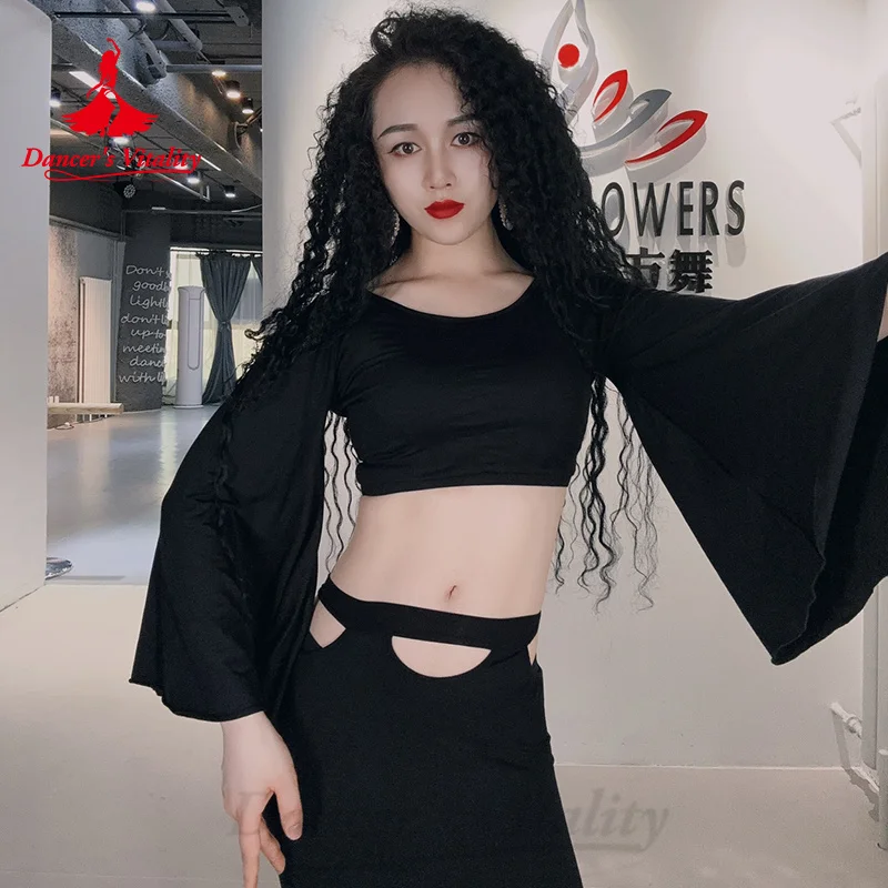 BellyDance Comfort Pure Cotton Set Customized Trumpet Sleeve Top+sexy Hip Wrap Skirt 2pcs Oriental Dance Performance Costumes