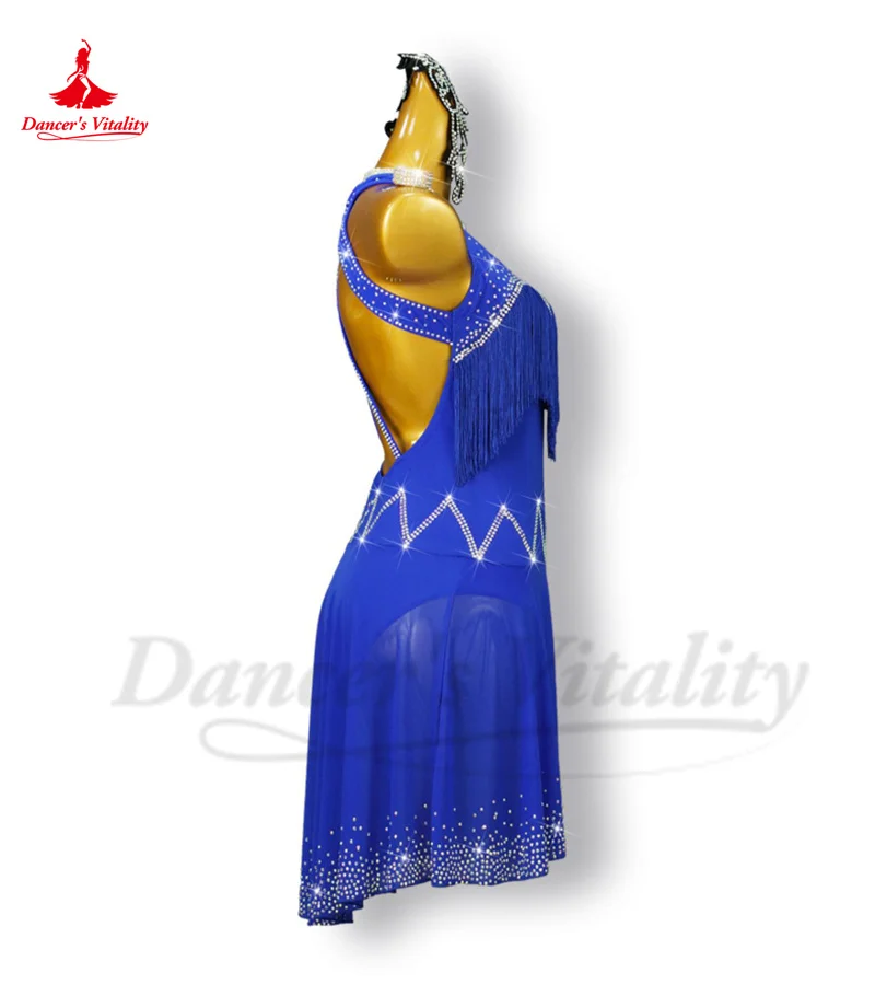 Latin Dance Dress for Women High-End Custom Rumba Chacha Fashion Costume Skirt AB Stones Adult Children Latin Fringe Dresses