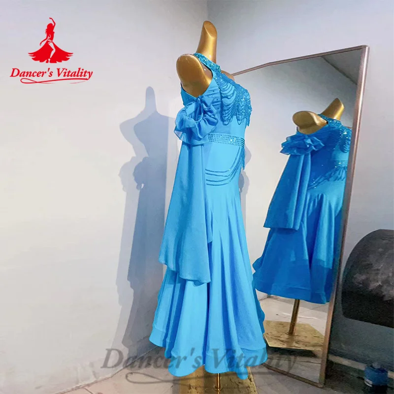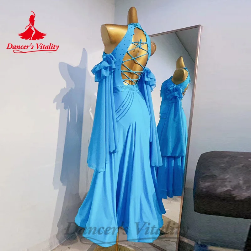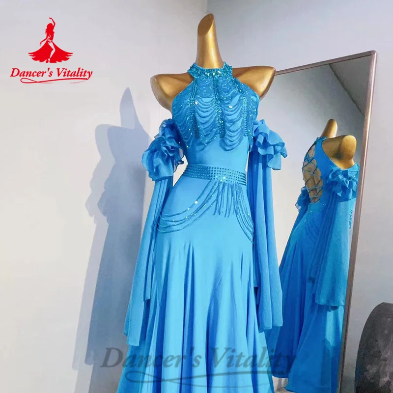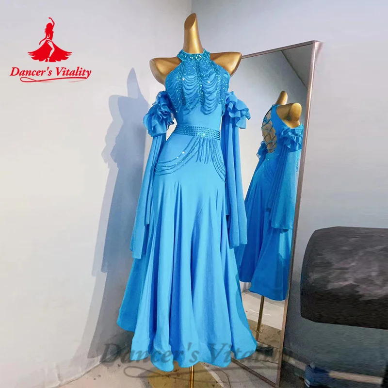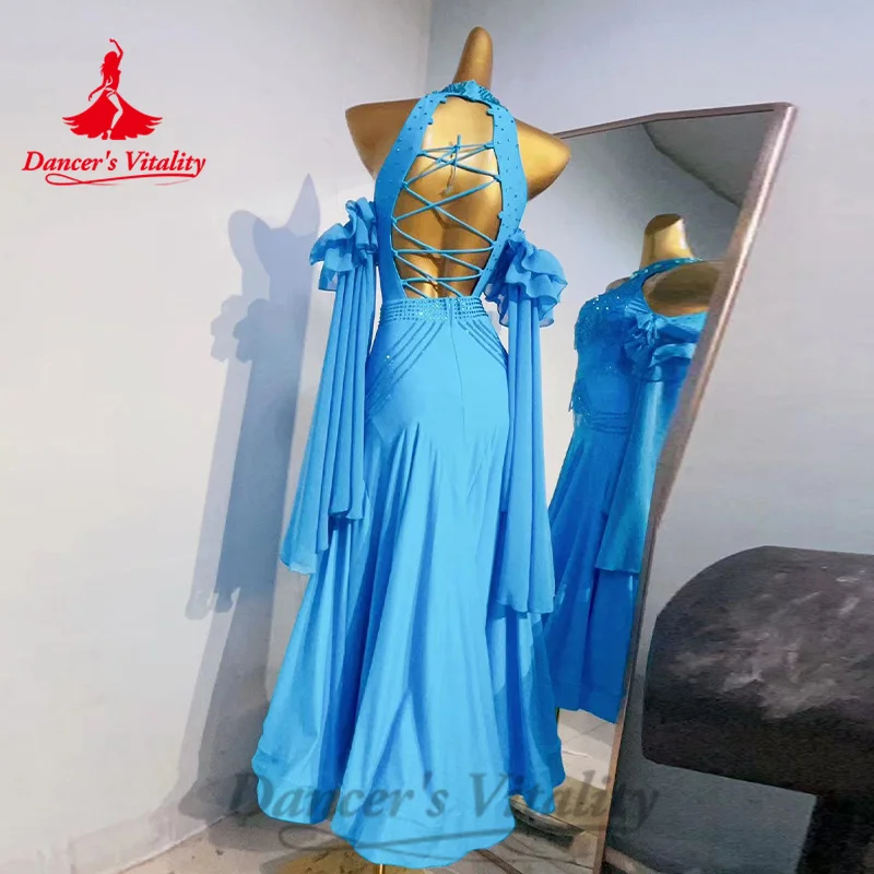 Ballroom Competition Dresses Women's Customization Long Sleeved Rhinestone Fishtail Dress Modern Dance Performance Costumes