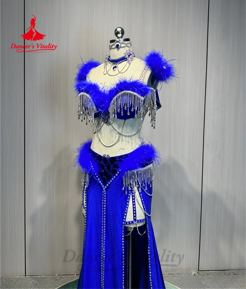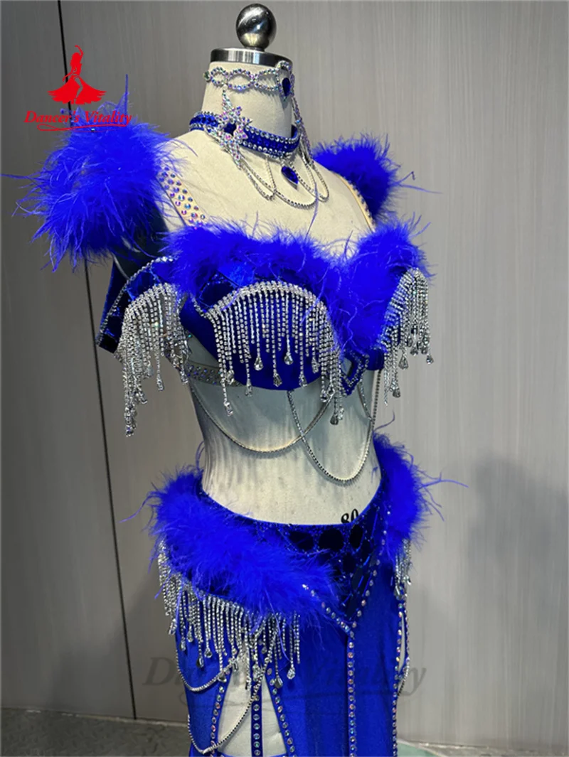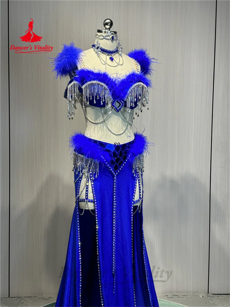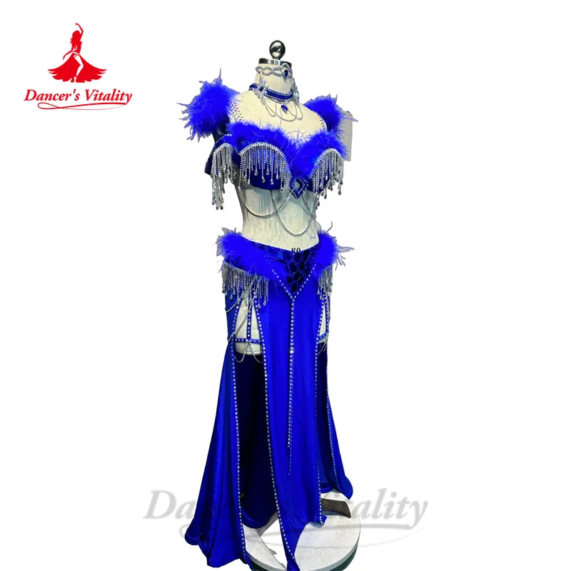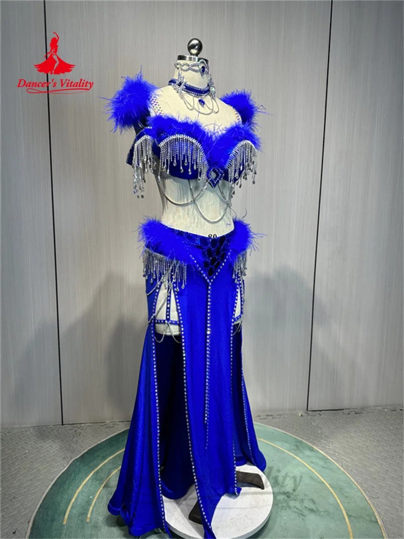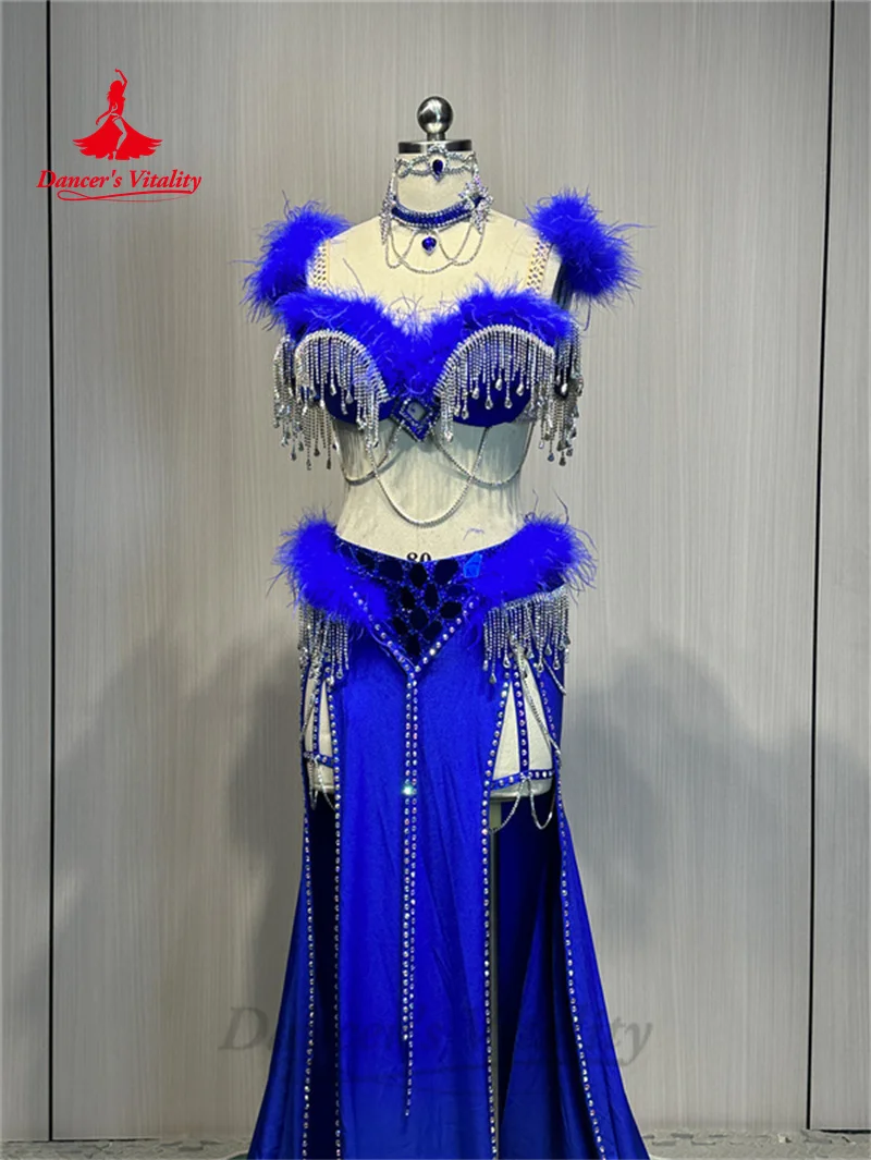 Belly Dance Costume Suit Customized Feathers Tassels Bra+diamond Long Skirt Oriental Dance Professional High End Dance Skirt