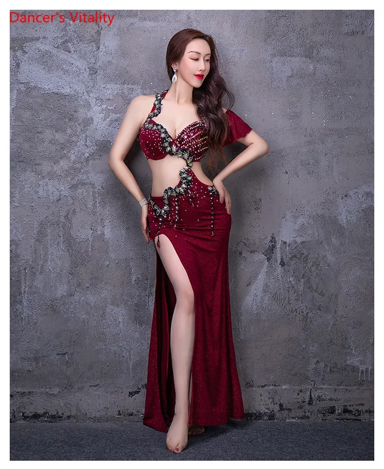 Belly Dancer Suit Diamond-Studded Bra Modal Long Skirt Performance Clothing Set Woman High-End Profession Competition Clothes