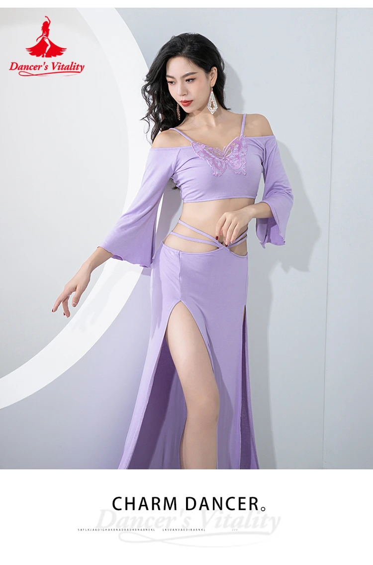 Belly Dance Butterfly Costume for Women Short Sleeves Top+split Long Skirt 2pcs Adult Oriental Belly Dancing Wear Outfit