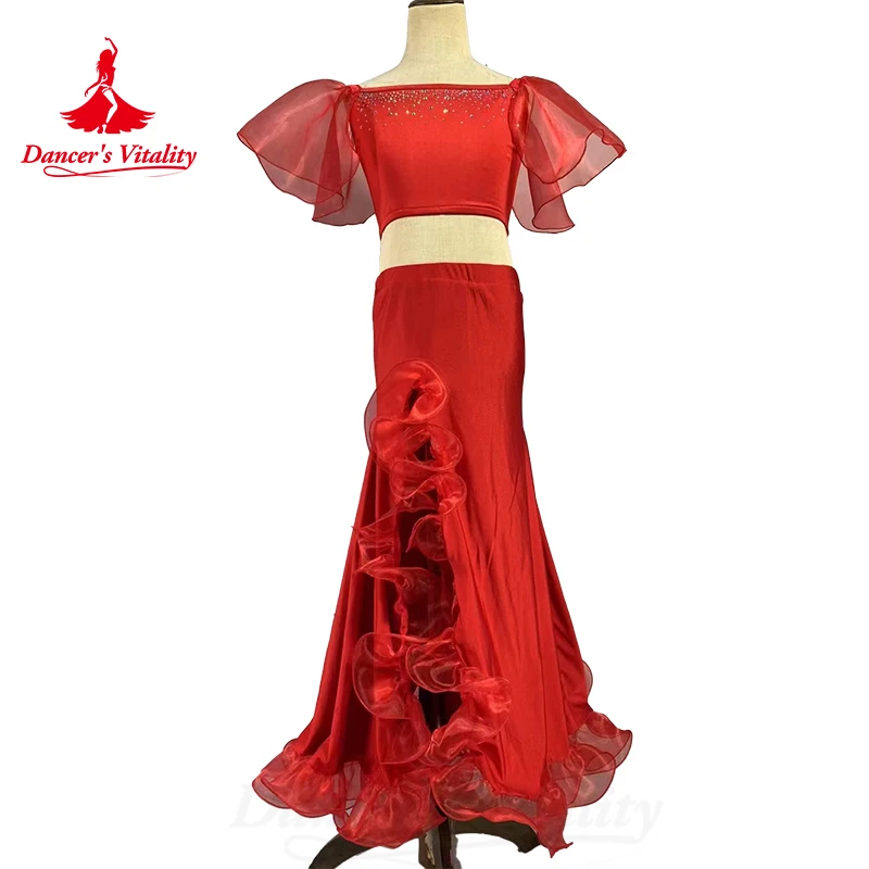 BellyDance Costume Set Customized Light Luxury Rhinestone Top+Fishtail Long Skirt 2pcs Women Oriental Dance Performance Costumes