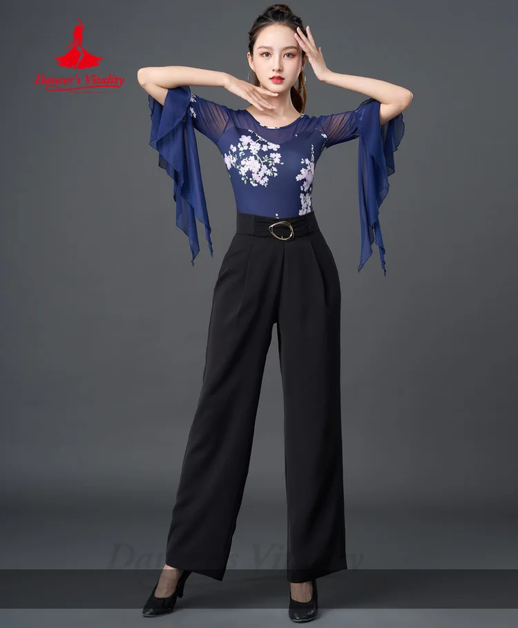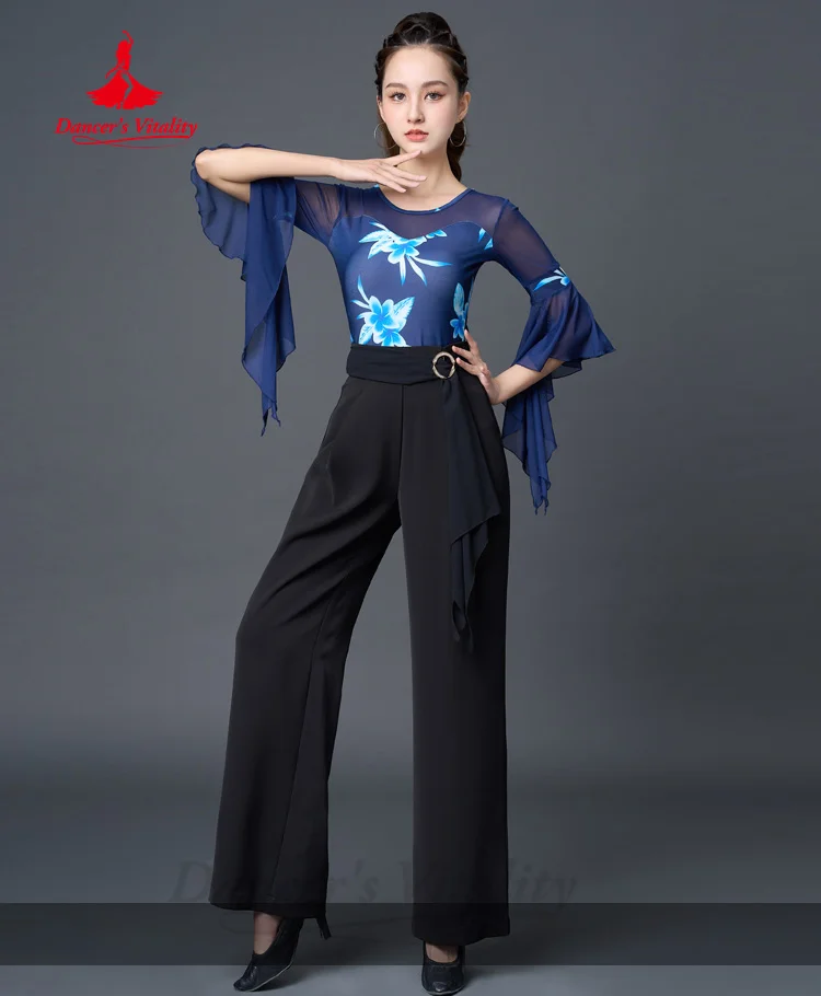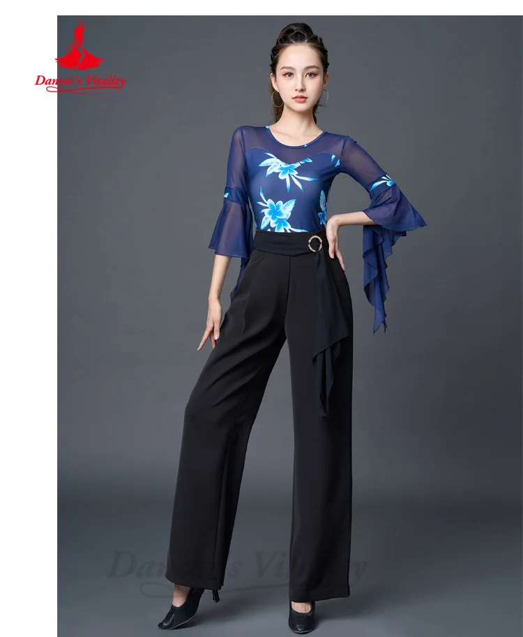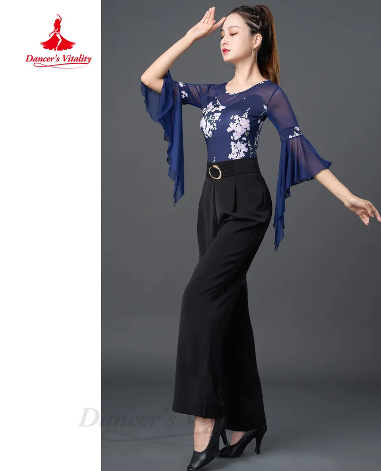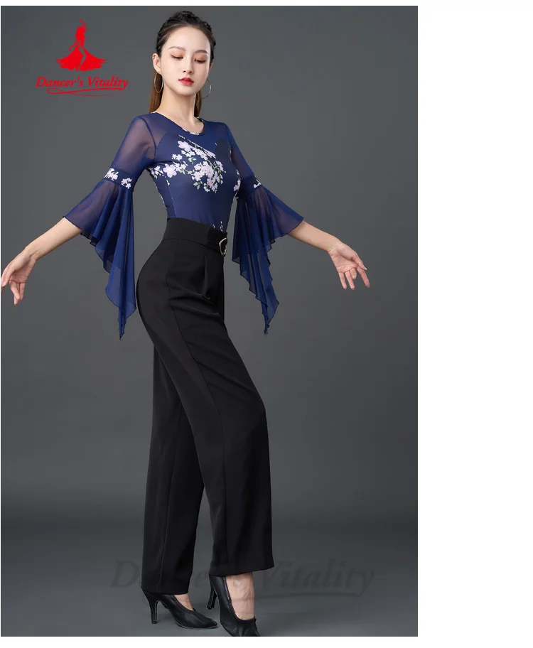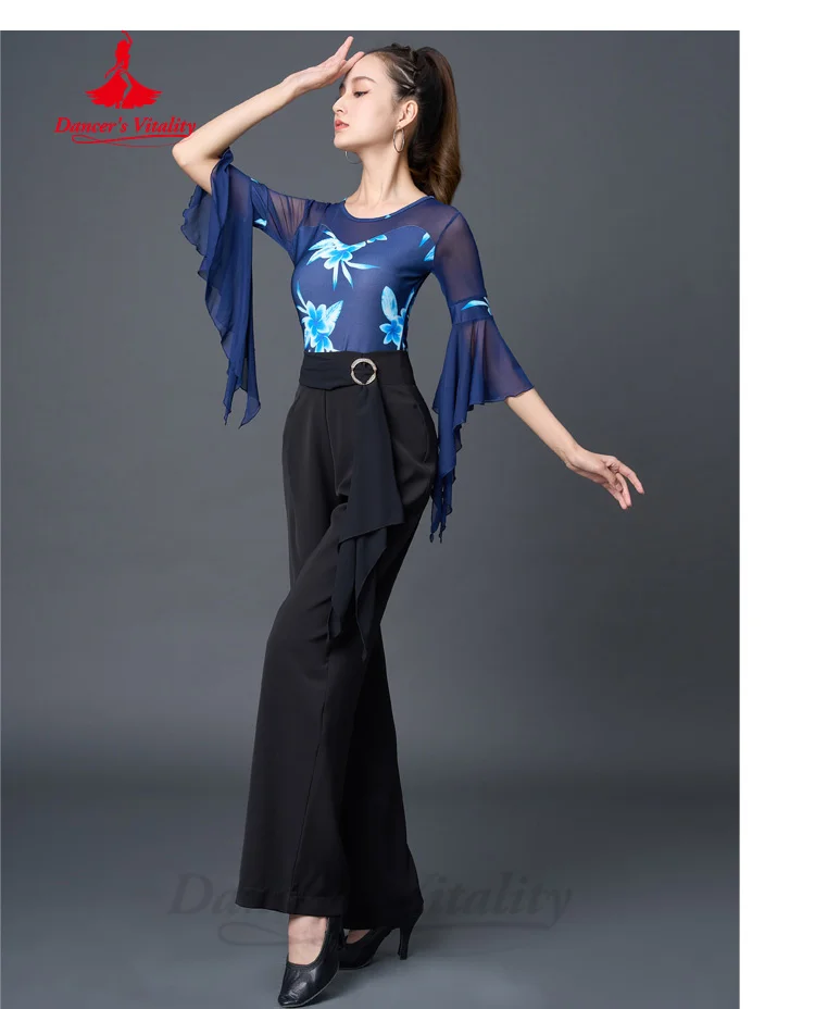 Latin Dance Practice Clothing Women's Customized High End Printed Flare Sleeve Top Chacha Rumba Samba Performance Costume