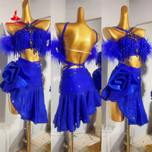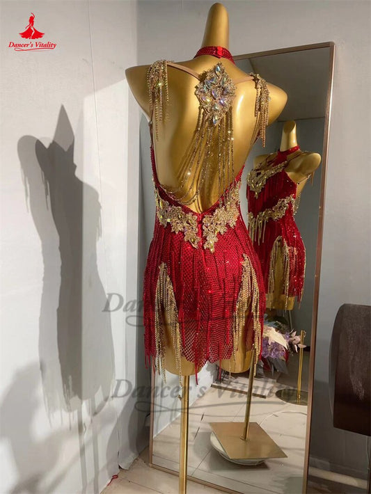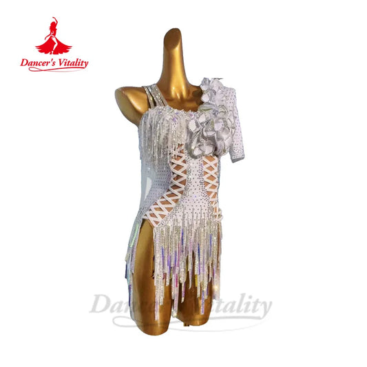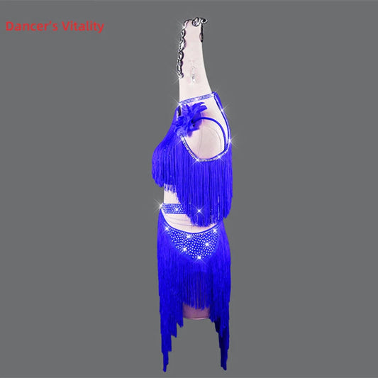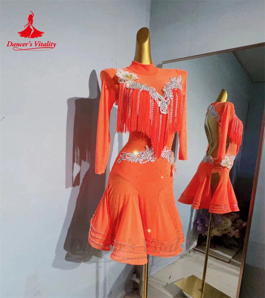 Latin Dress for Women Rumba Chacha Dance Competition Dresses Customzied Adult Children Latin Dancing Performance Tassel Skirt