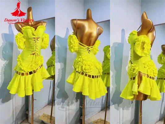 Latin Practice Dress for Women Spandex Flower Rumba Chacha Tango Performance Competiton Costume Custom Adult Child Latin Dresses