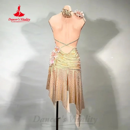 Latin Dancing Women's Customized Exquisite Flowers Sexy Backless Dress Girl Tango Chacha Samba Professional Performance Clothing