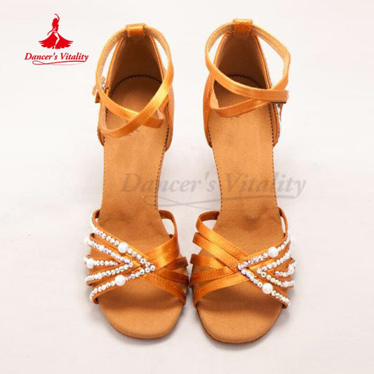 Latin Shoes Girl's Height 5.5cm,7.5cm,8.5cm Shoes for Women Rumba Chacha Tango Performance Accessories Shoes