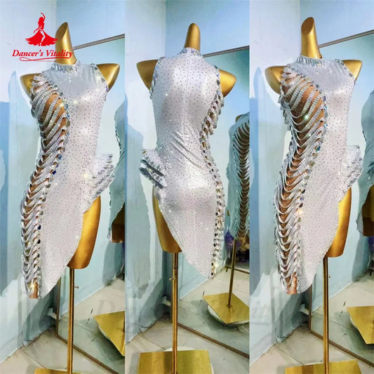 Latin Dress Women Full Stones Rumba Chacha Tango Performance Competiton Costume Skirt Custom Adult Child Latin Dancing Dresses