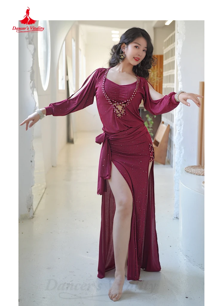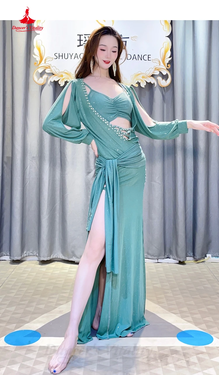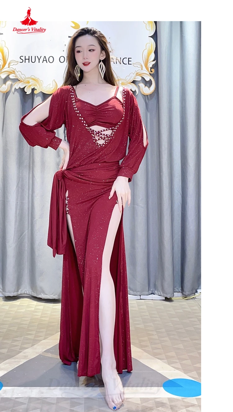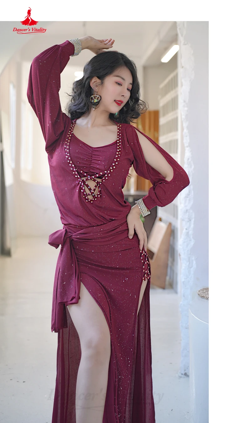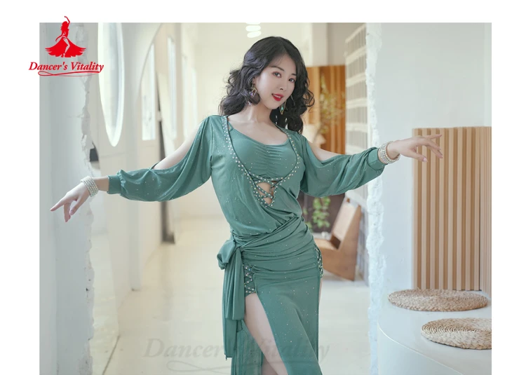 Belly Dance Costume Suit for Women Shaabi Balai Saidy Clothing Long Sleeves Robe+belt Girl's Oriental Belly Dancing Stage Outfit