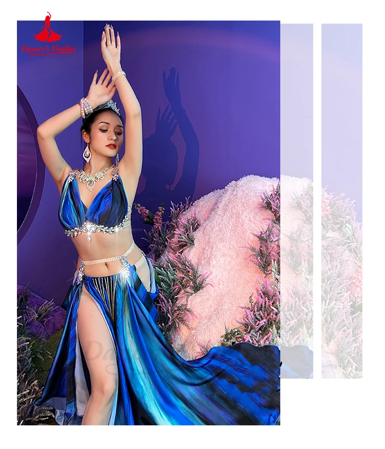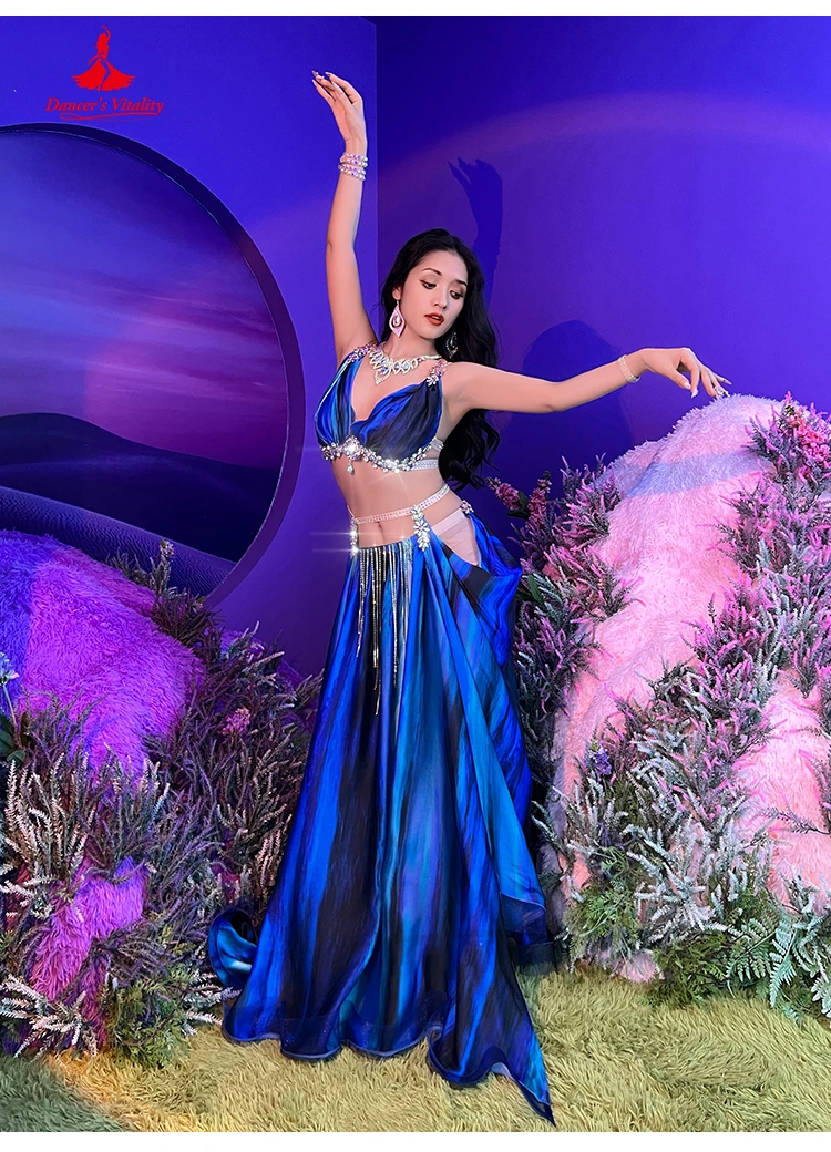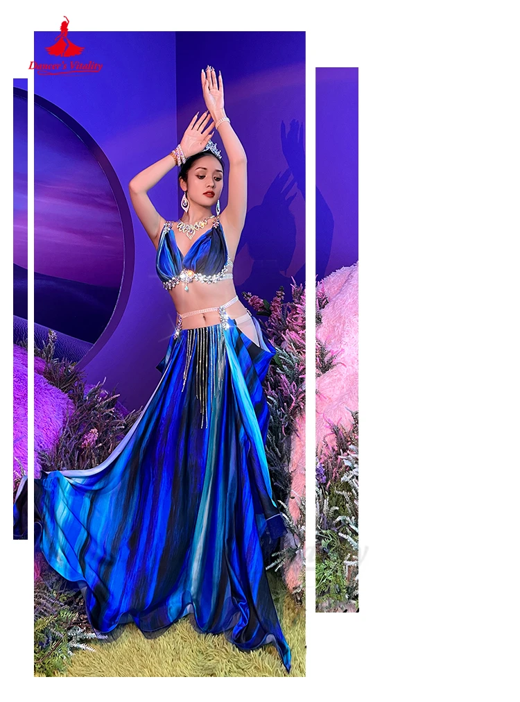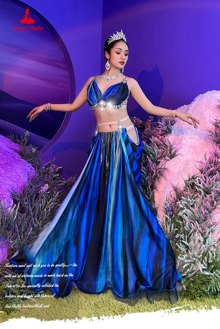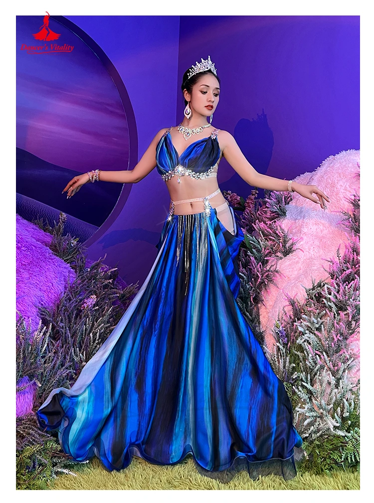 Belly Dance Performance Costume Suit for Women Tie Dye Tassel Competition Set Bra+saitin Skirt 2pcs Bellydancing Stage Outfit