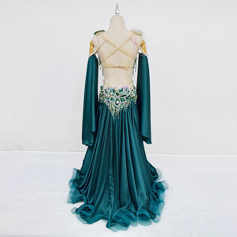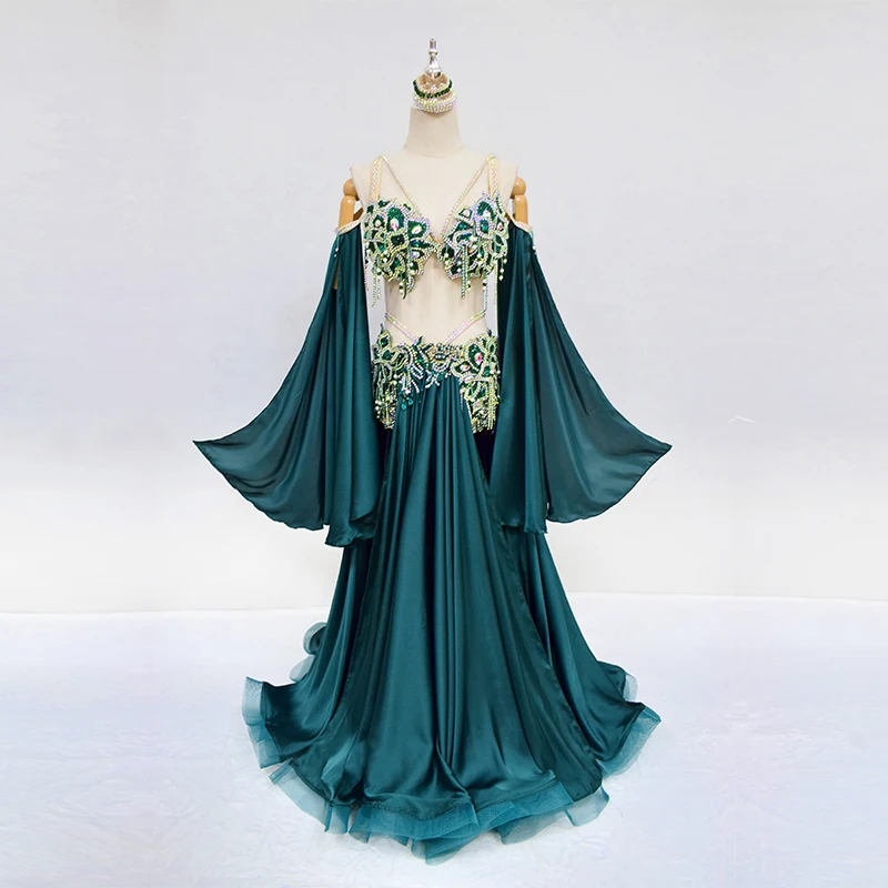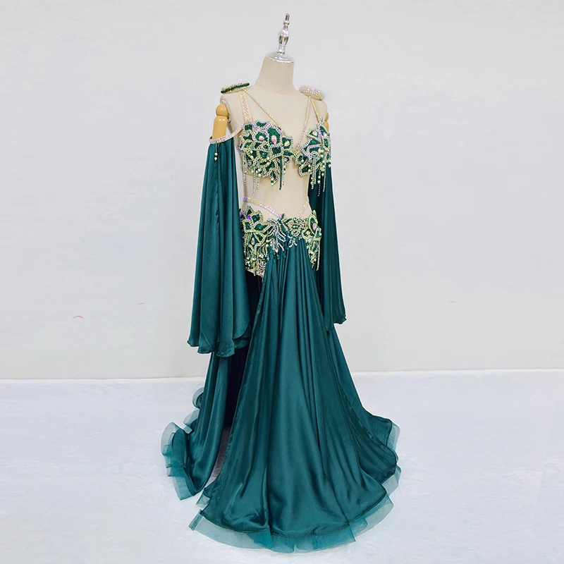 BellyDance Costume Set Senior AB Stones Bra+Luxury Hot Diamond Split Long Skirt Oriental Dance Professional Performance Clothing