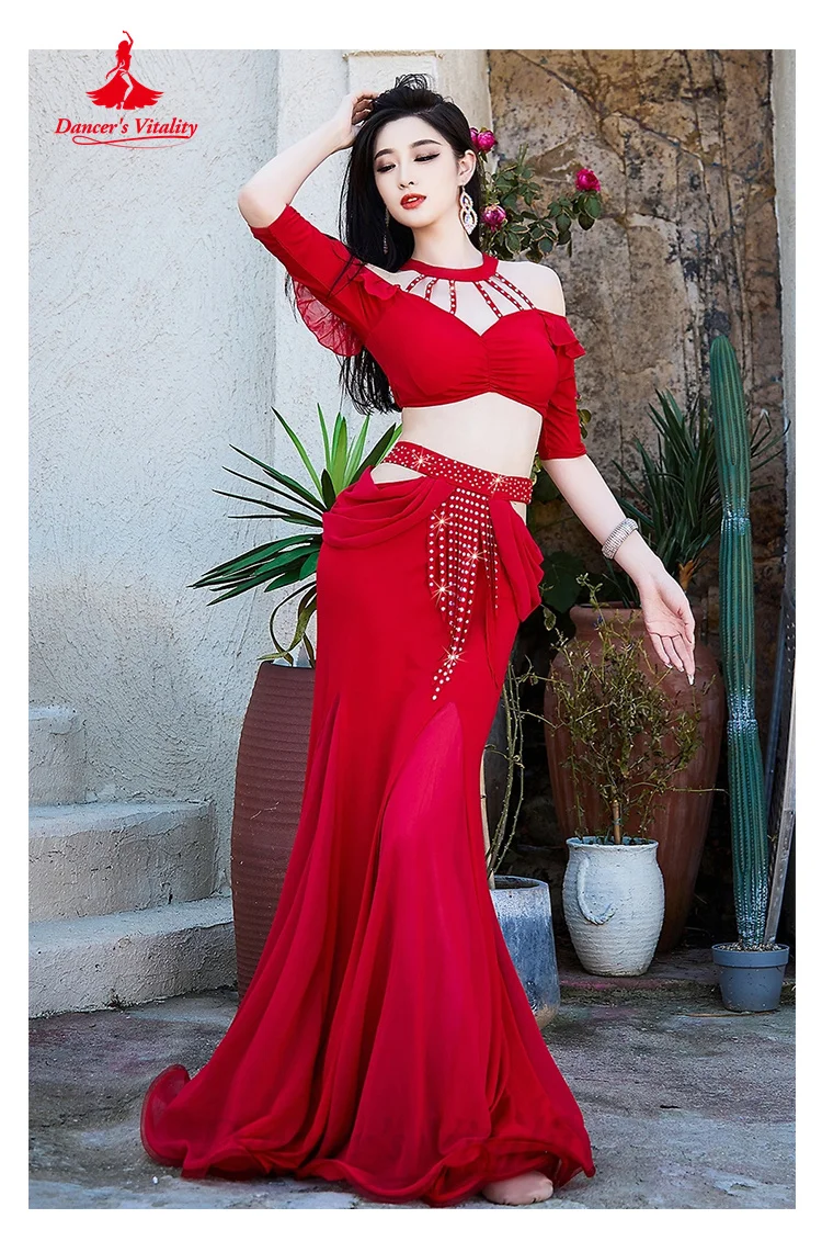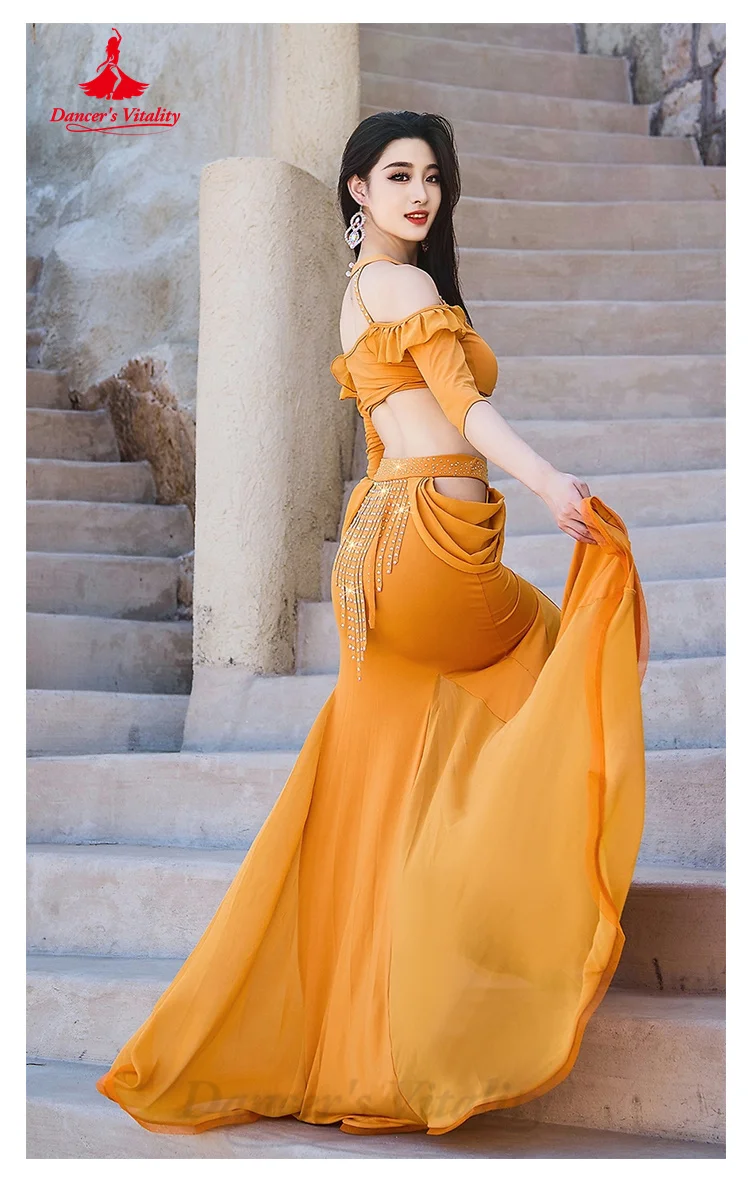 BellyDance Costumes for Women's Sexy V-neck Top+Tassel Fishtail Skirt 2pcs Belly Dancer Practice Clothes Adult Dancing Clothing