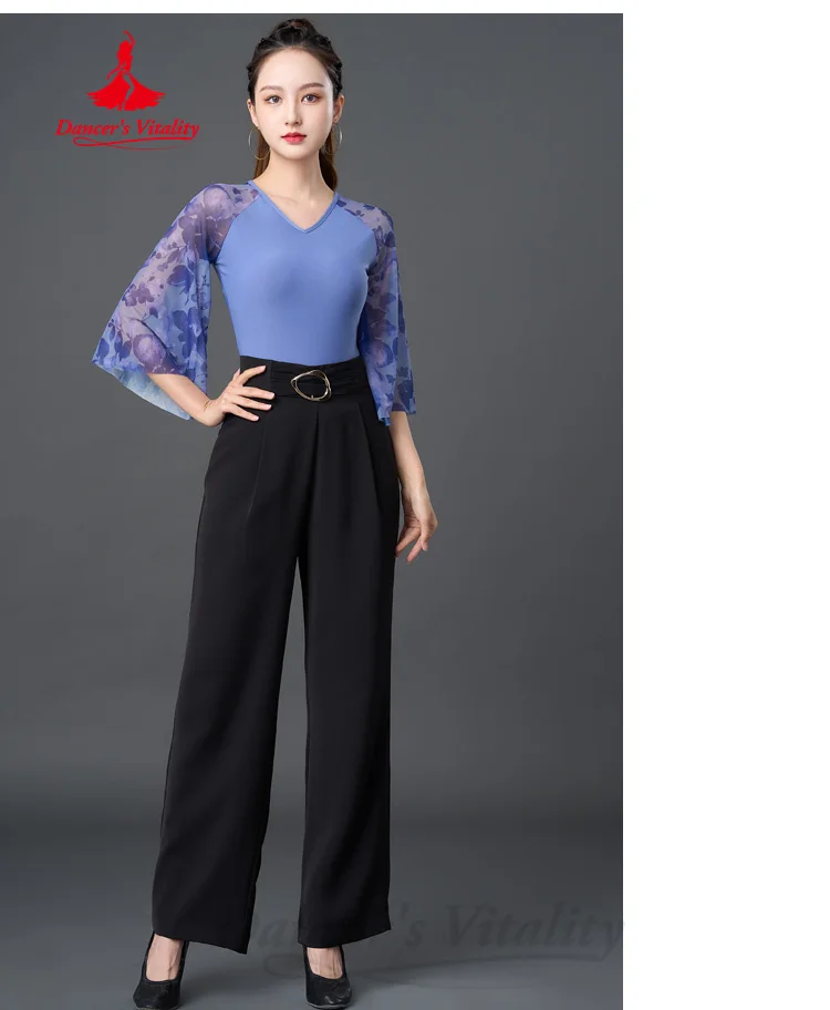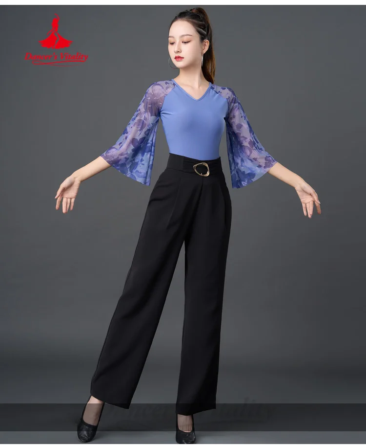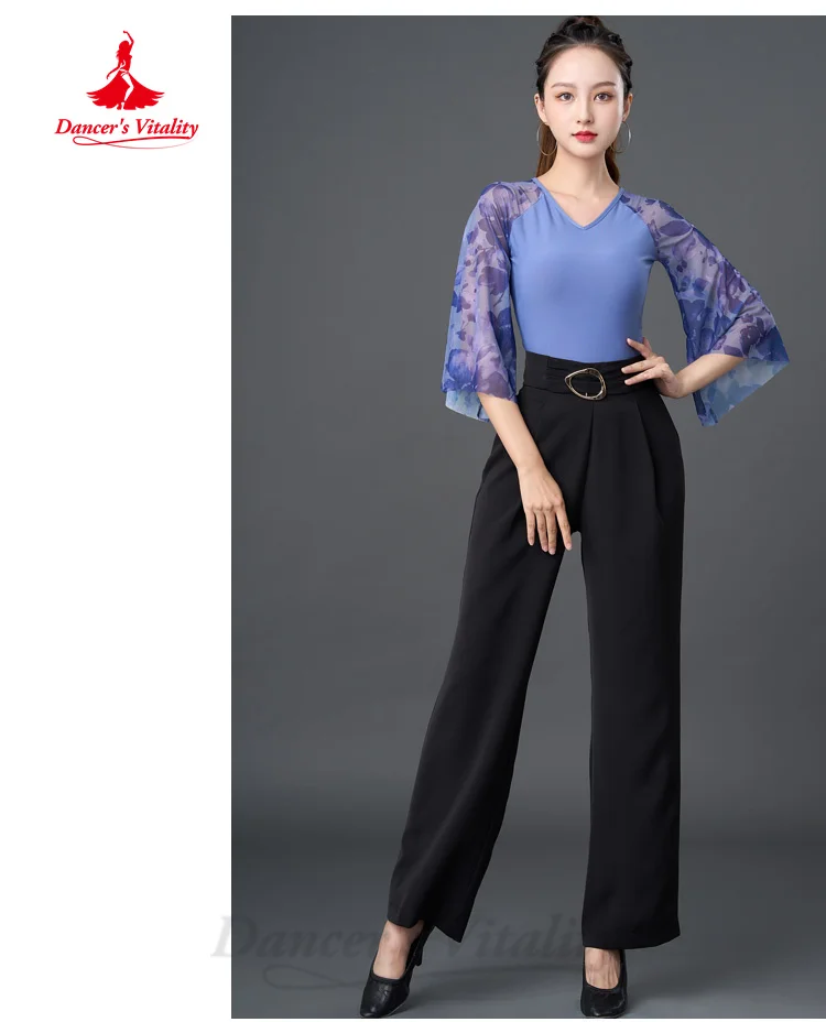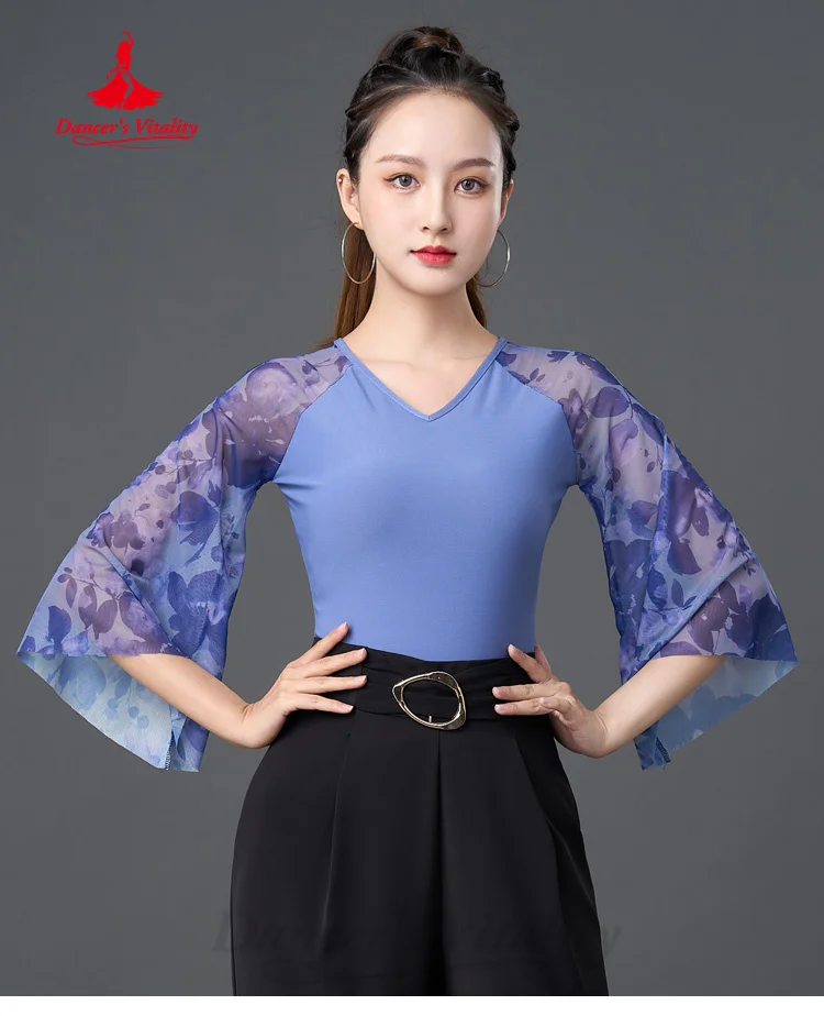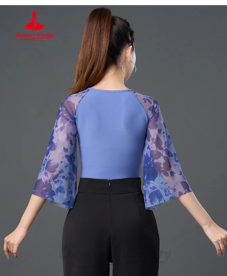 Latin Dancing Social Dance Practice Clothes Customized Printed Flare Sleeves Top Women's Tango Chacha Samba Performance Costume