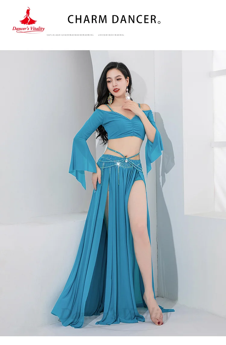 BellyDance Costume Suit Customized Trumpet Sleeve Top+Chiffon Split Long Skirt 2pcs Women's Oriental Dance Performance Clothing