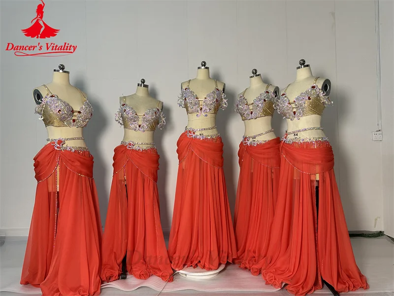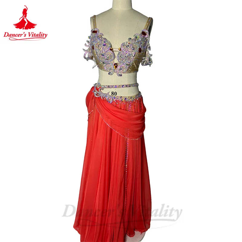 Belly Dance Performance Costume Set for Women Senior AB Stones Bra+chiffon Long Skirt 2pcs Custom Adult Child Oriental Outfit